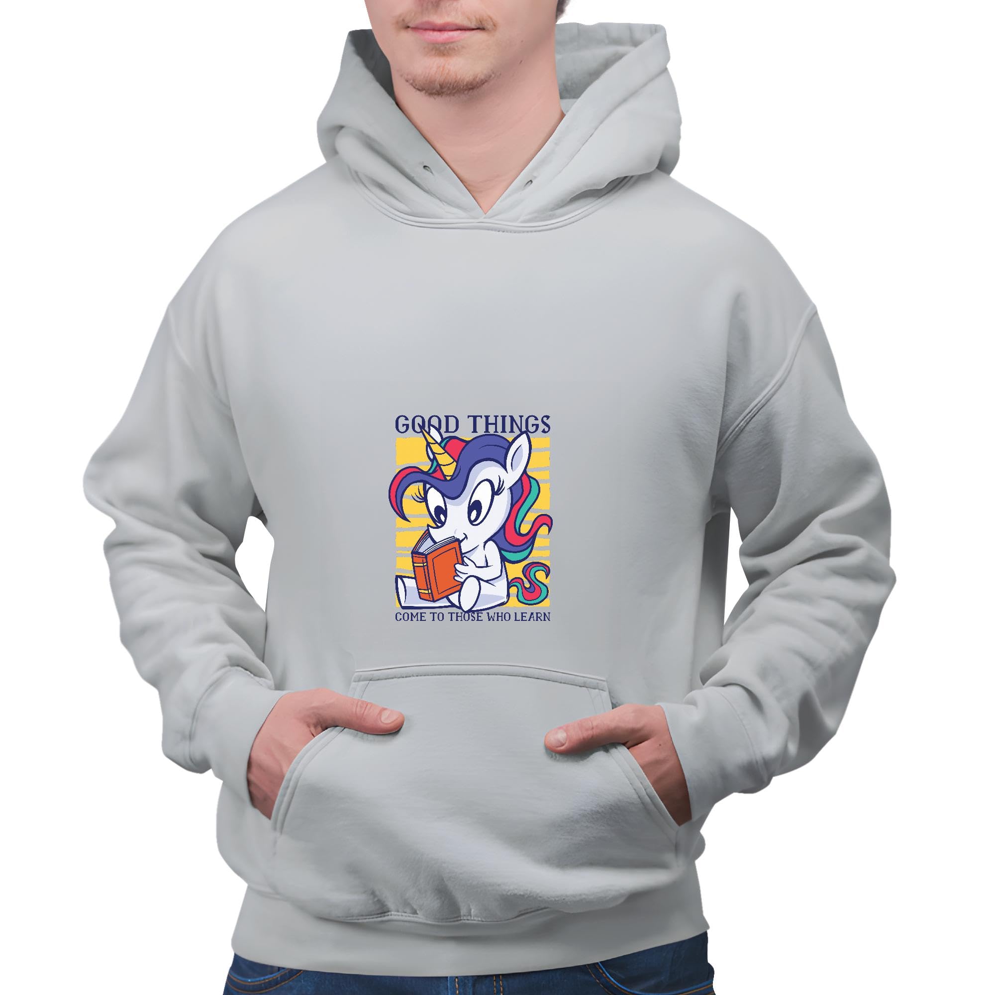 Unicorn Reading Book Gift for Kids Who Love Learning Inspirational Quote Gray and Muticolor Unisex Hoodie