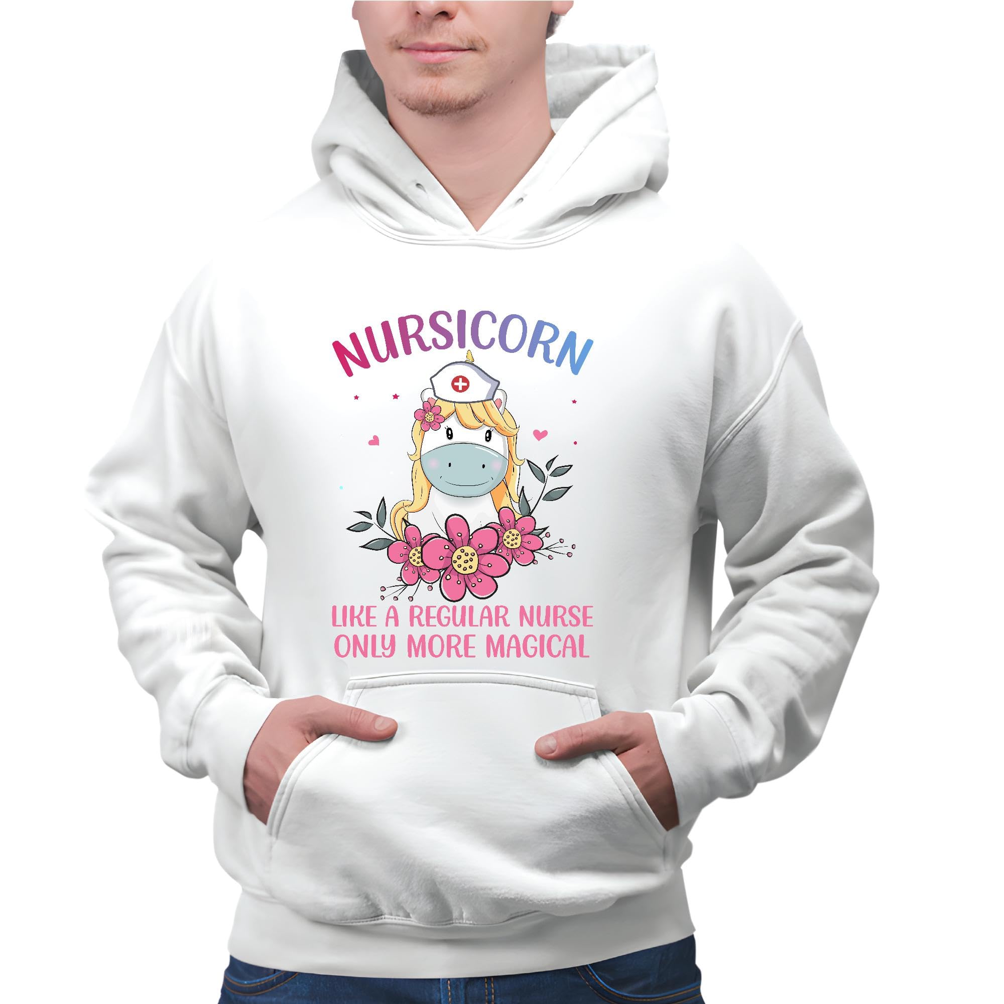Unicorn Nursicorn like a regular Nurse only more magical Proud Gray and Muticolor Unisex Hoodie