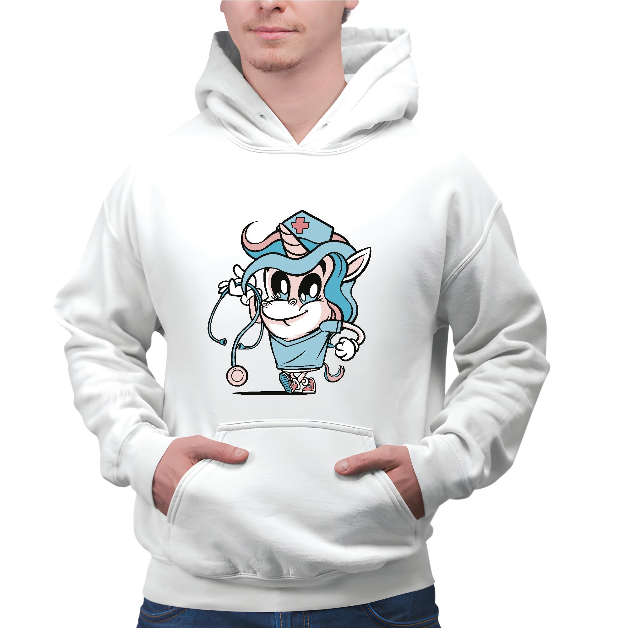 Unicorn Nurse Design Gift Perfect For Fantasy Lovers and Nurses Gray and Muticolor Unisex Hoodie