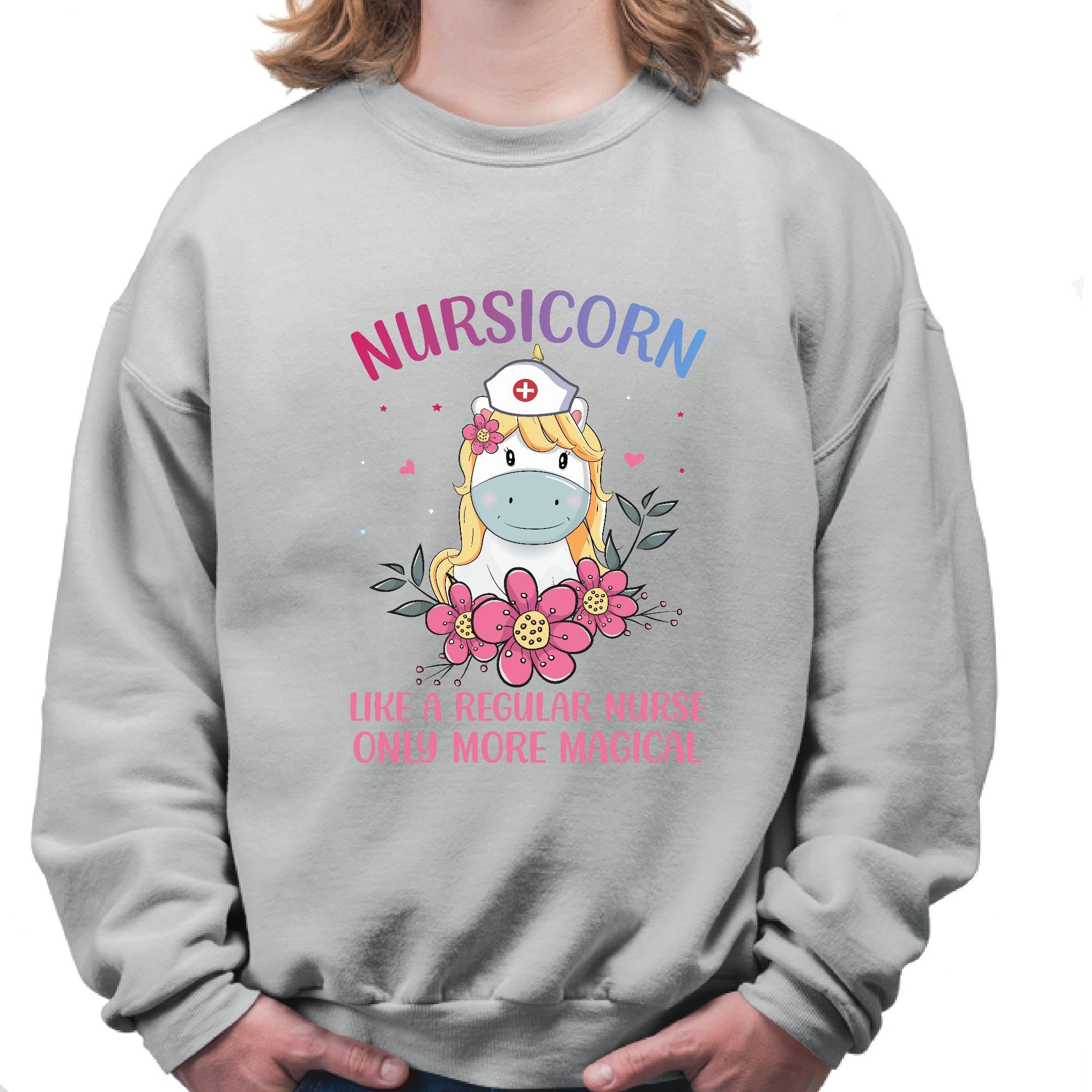 Unicorn Nursicorn like a regular Nurse only more magical Proud Grey Muticolor Unisex Sweatshirt