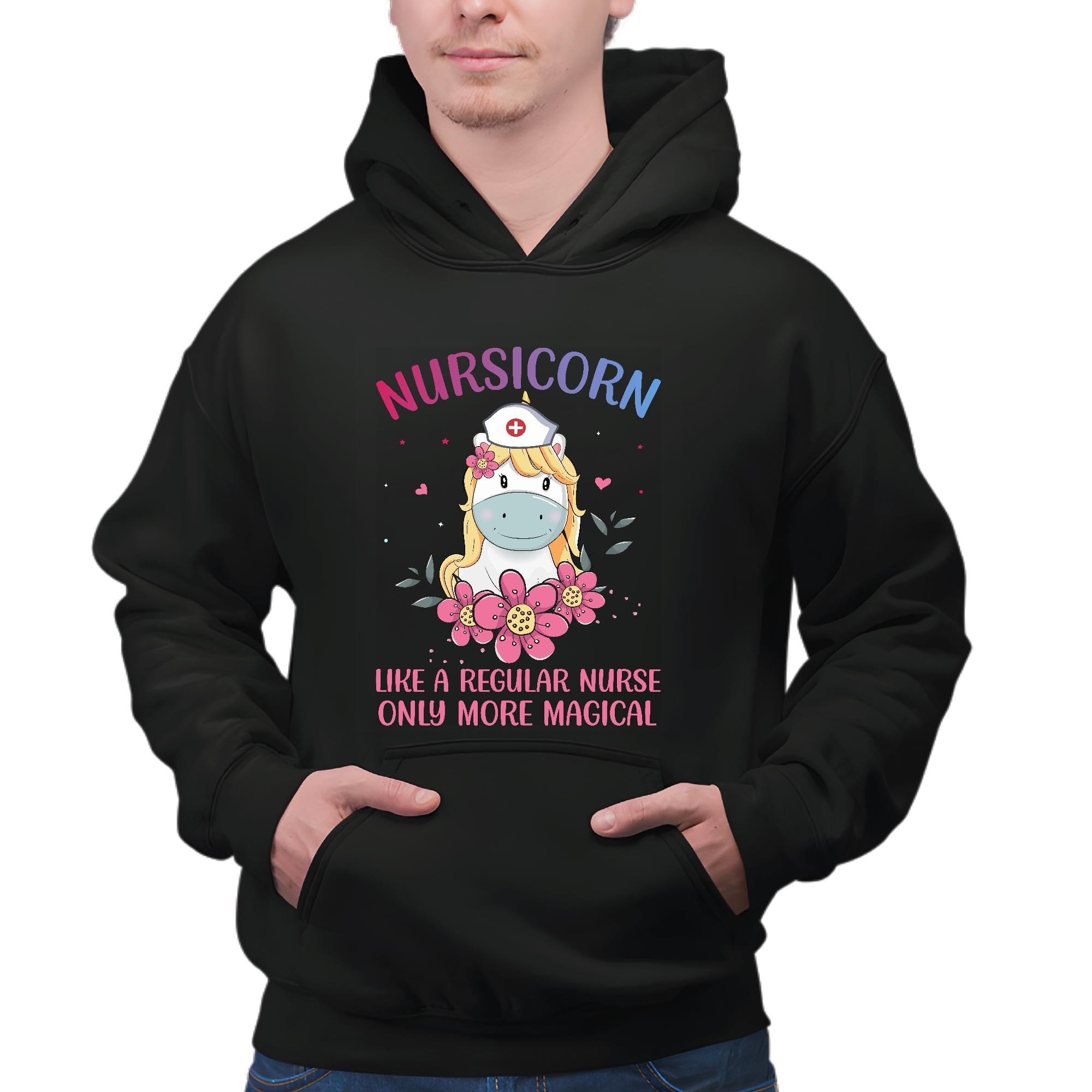 Unicorn Nursicorn like a regular Nurse only more magical Proud Black and Muticolor Unisex Hoodie