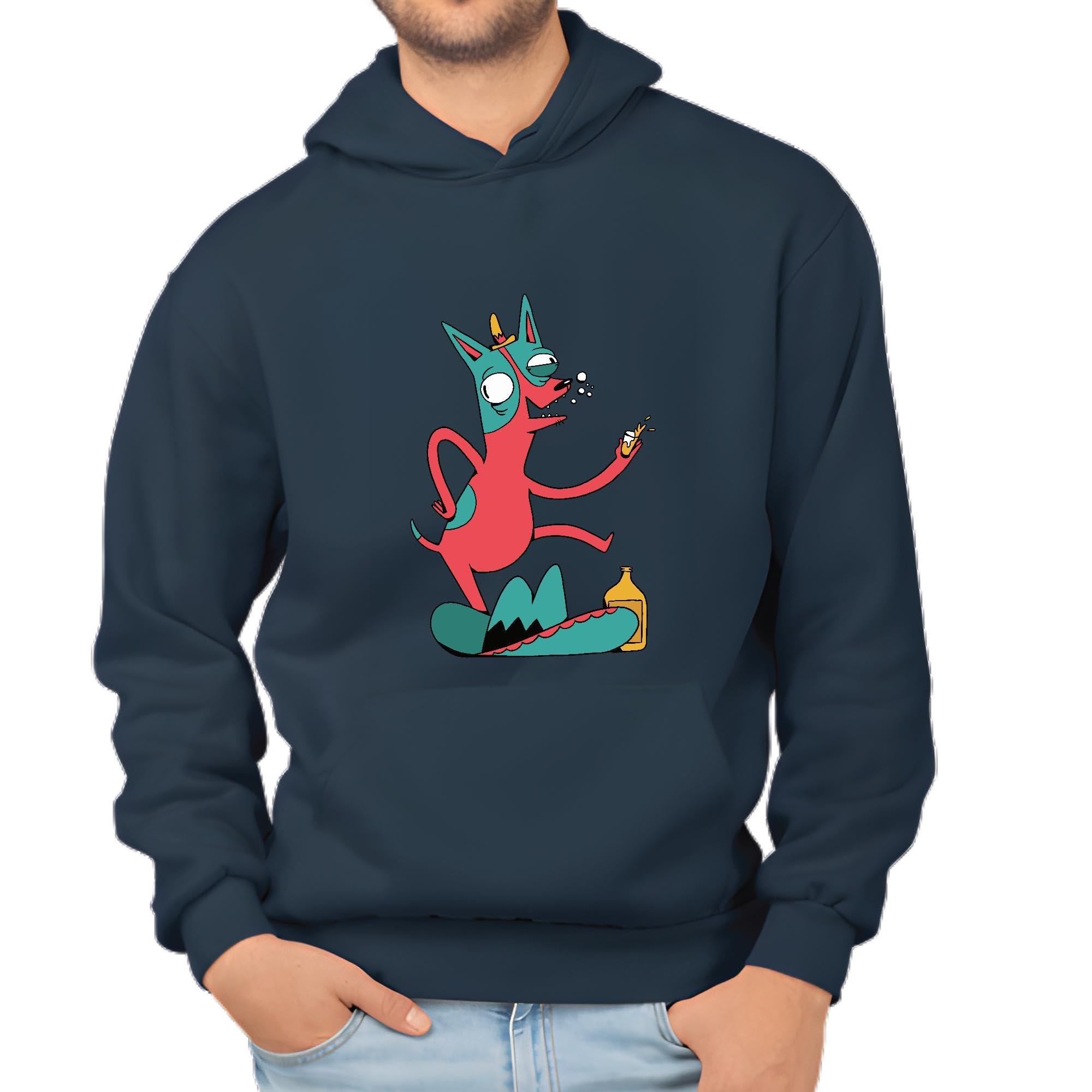 Unique Alcohol Themed Gift for Chihuahua Lovers Dancing Sombrero Chihuahua Navy and Muticolor Unisex Hoodie