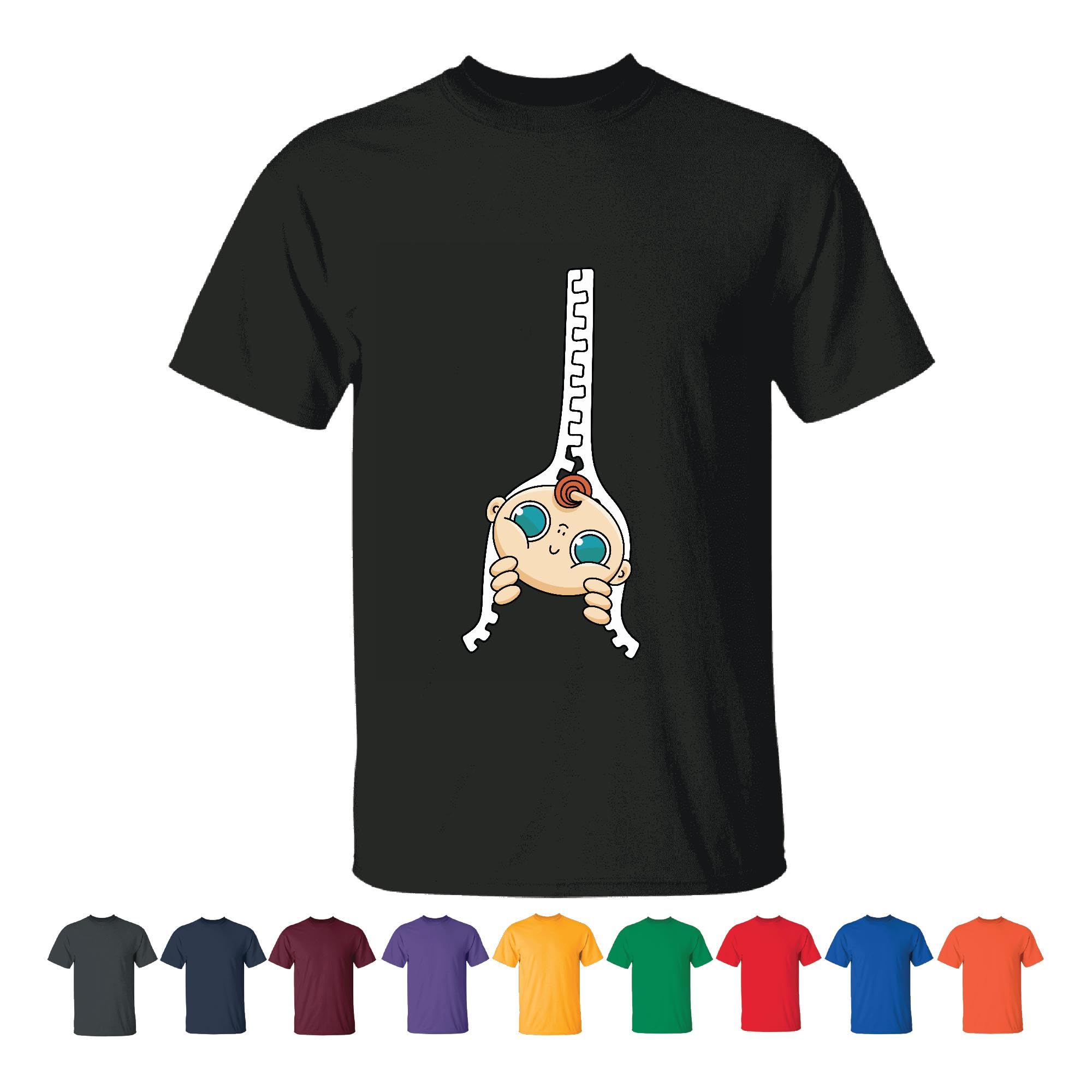 Unique Baby Gift Idea Creative Zipper Design Perfect Present for New Parents Men Women Black T shirt