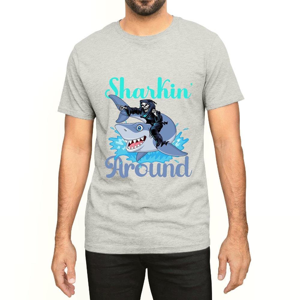 Unique Beachy Skeleton Shark Gift for Ocean Lovers Men Women White Gray Multicolor T shirt