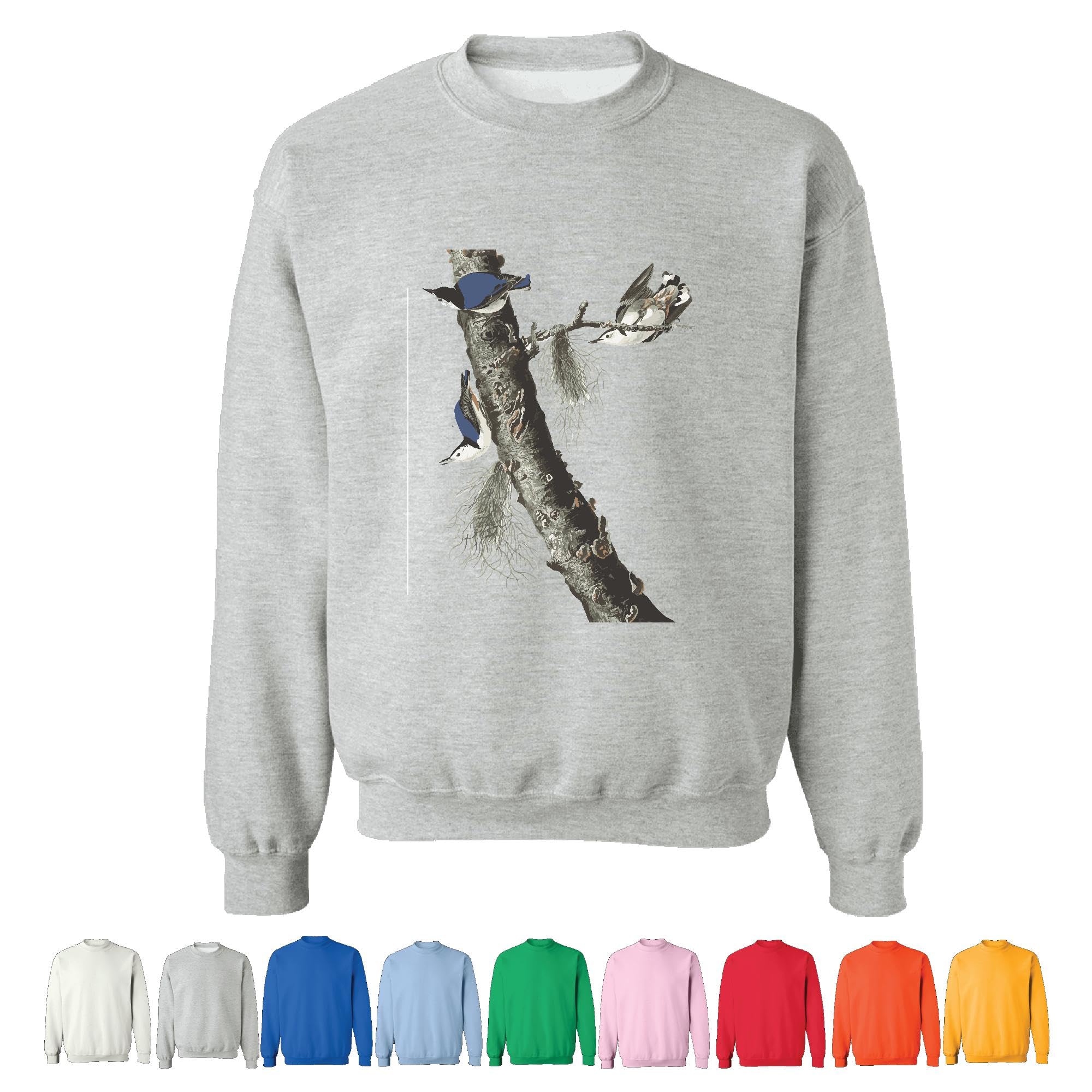 Unique Bird Gift for Nature Lovers White breasted Nuthatch Graphic Art Grey Muticolor Unisex Sweatshirt