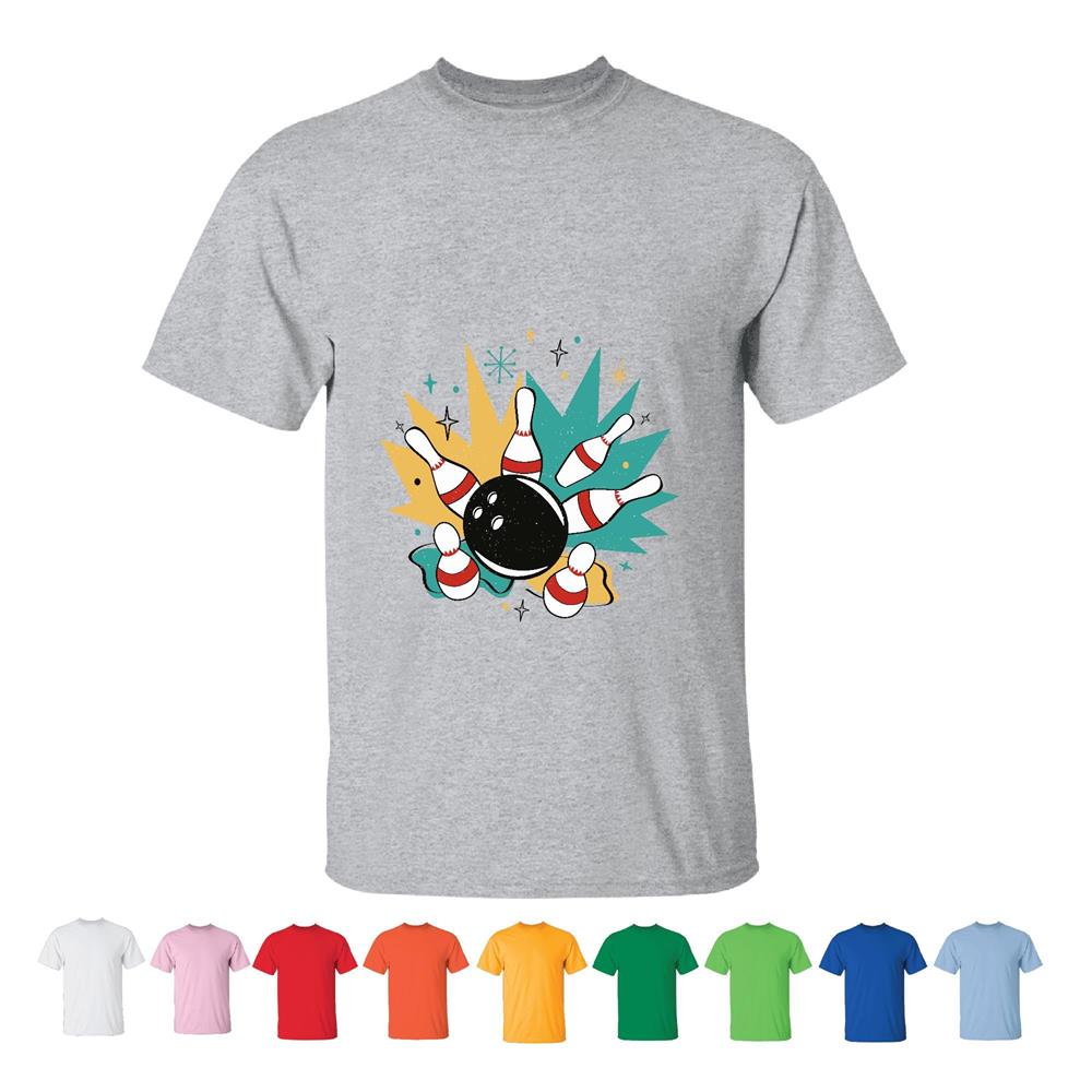 Unique Bowling Sports Gifts for Everyone Retro Pins and Bowling Ball Home Decoration Men Women White Gray T shirt
