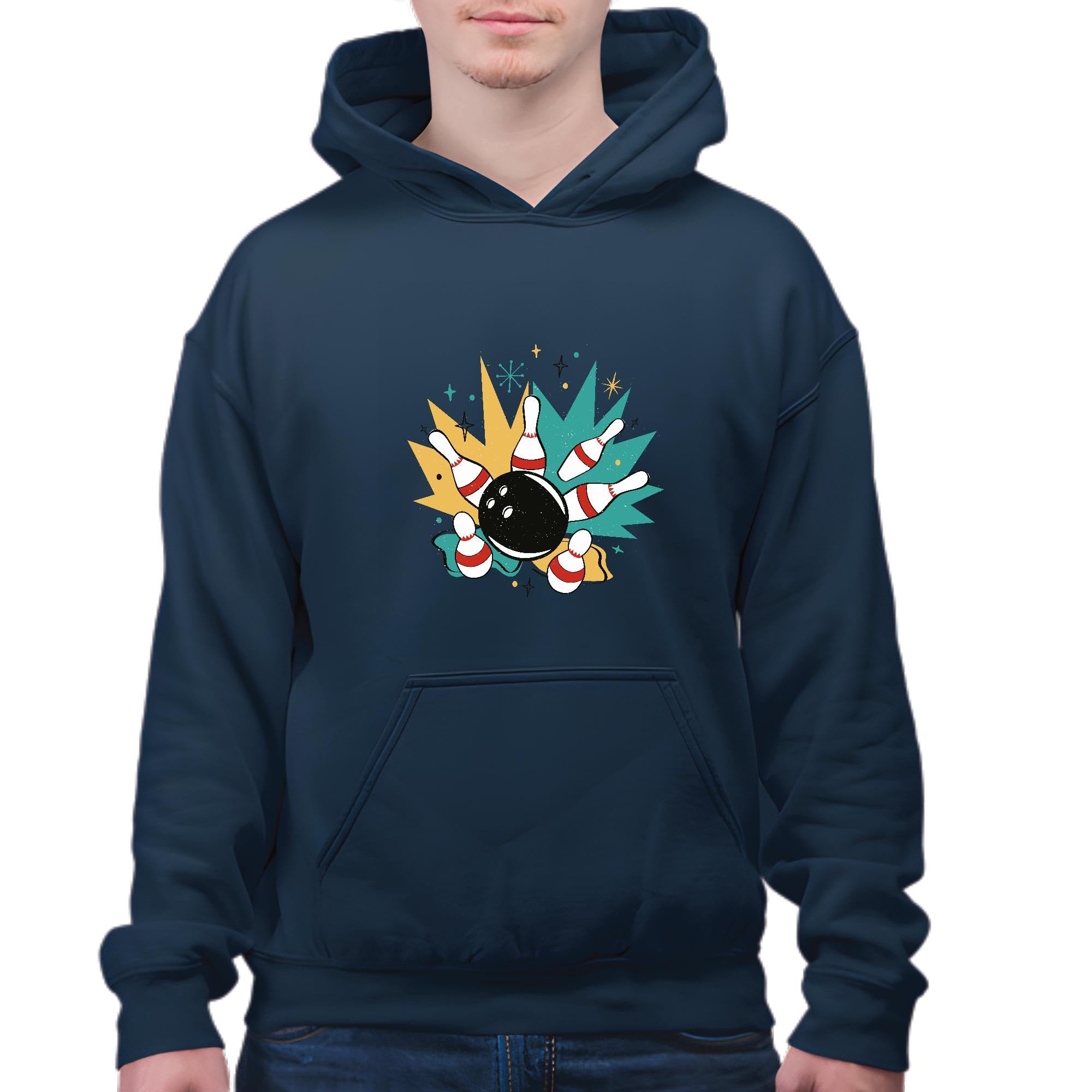 Unique Bowling Sports Gifts for Everyone Retro Pins and Bowling Ball Home Decoration Navy and Muticolor Unisex Hoodie