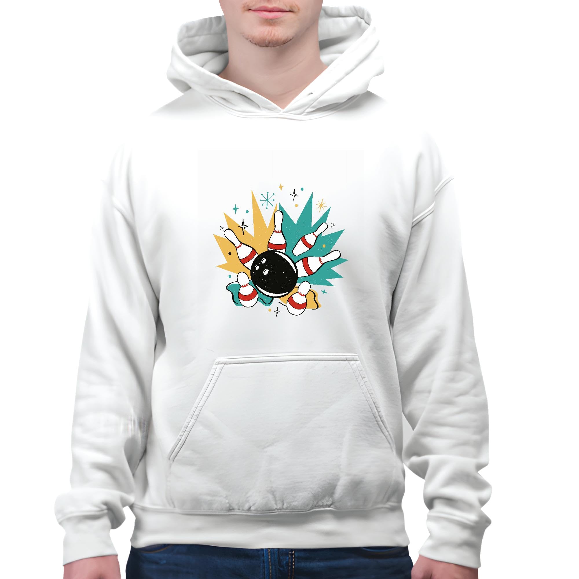 Unique Bowling Sports Gifts for Everyone Retro Pins and Bowling Ball Home Decoration White and Muticolor Unisex Hoodie