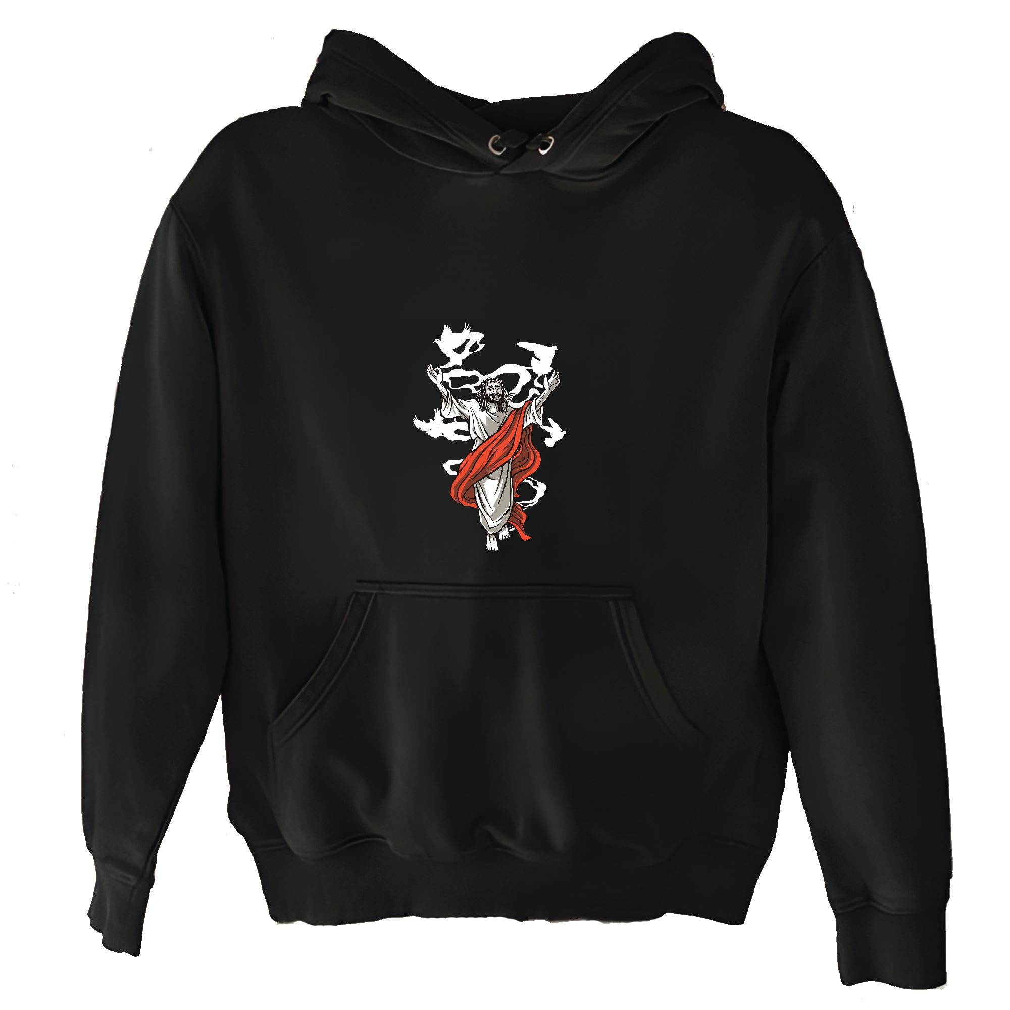 Unique Christian Gift Jesus with White Doves for Believers and Followers Black and Muticolor Unisex Hoodie