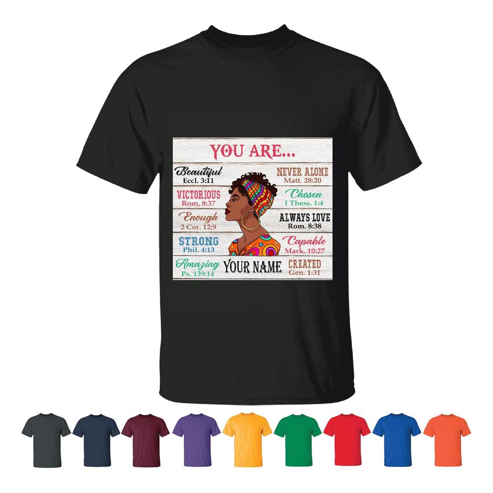 Unique for Black GirlsYou Are Beautiful Victorious Strong Never Alone Men Women Black T shirt