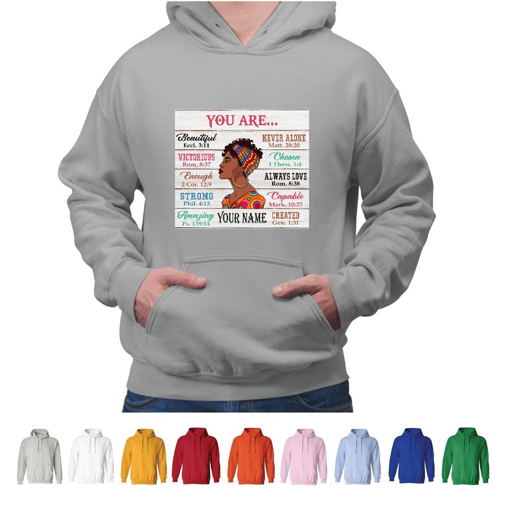 Unique for Black GirlsYou Are Beautiful Victorious Strong Never Alone Gray and Muticolor Unisex Hoodie
