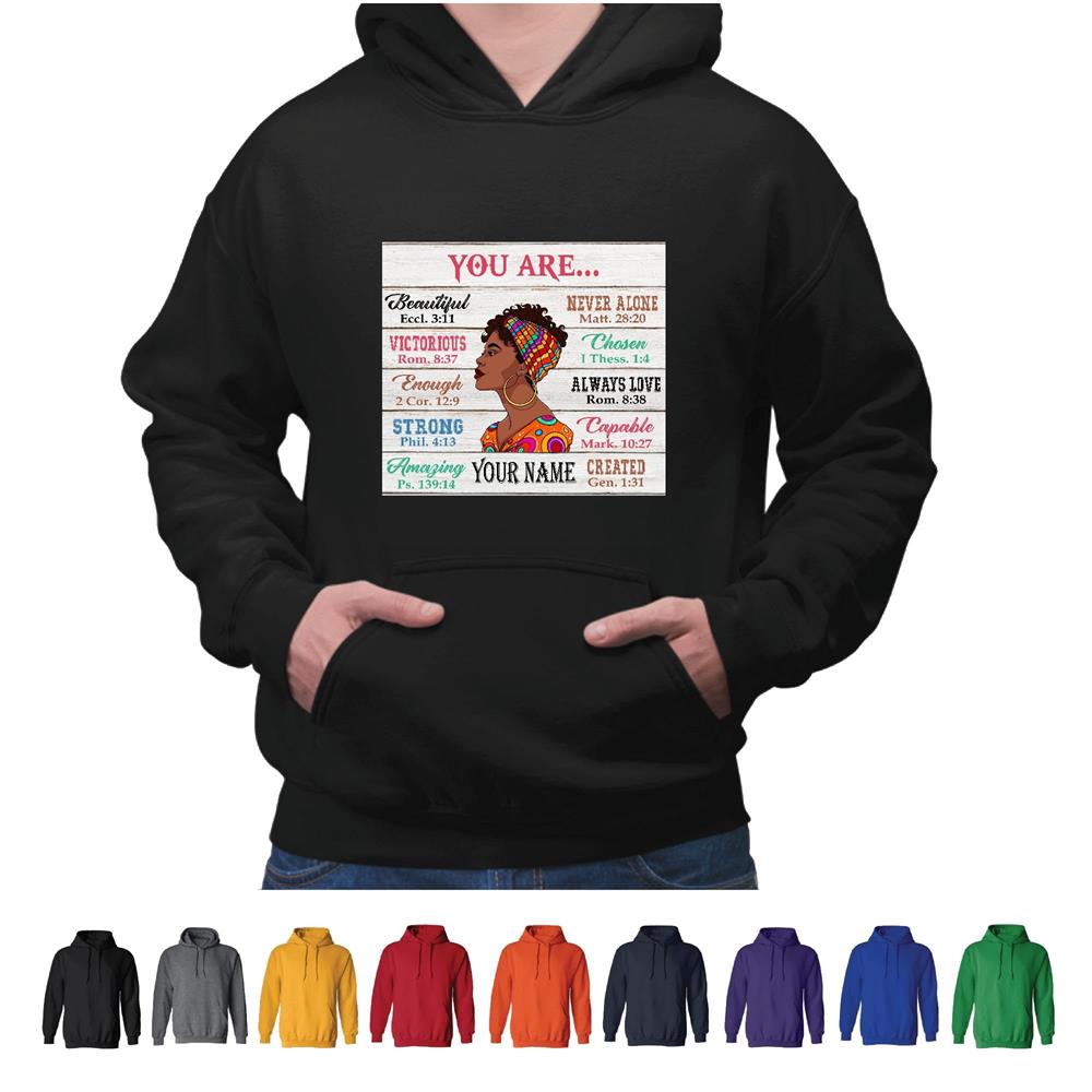 Unique for Black GirlsYou Are Beautiful Victorious Strong Never Alone Black and Muticolor Unisex Hoodie