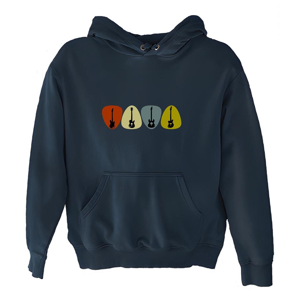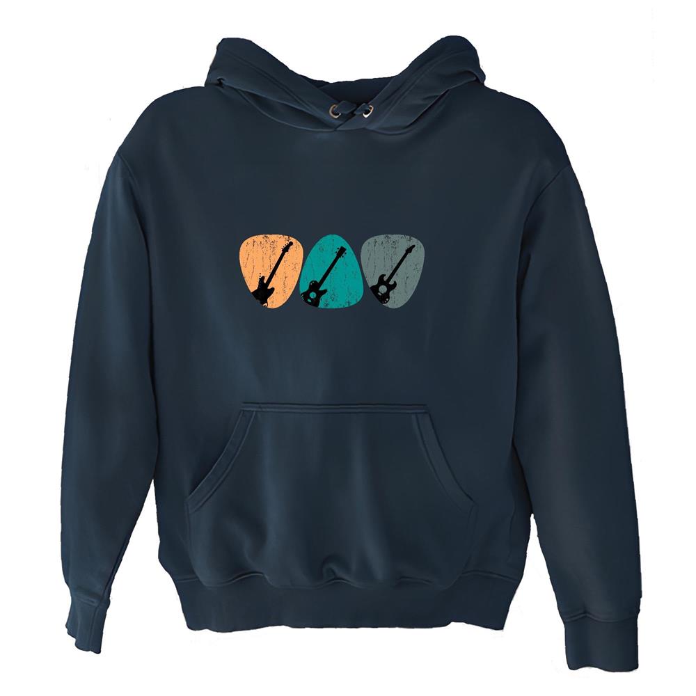 Unique for Music Lovers Vintage Retro Guitarist Musician Navy and Muticolor Unisex Hoodie