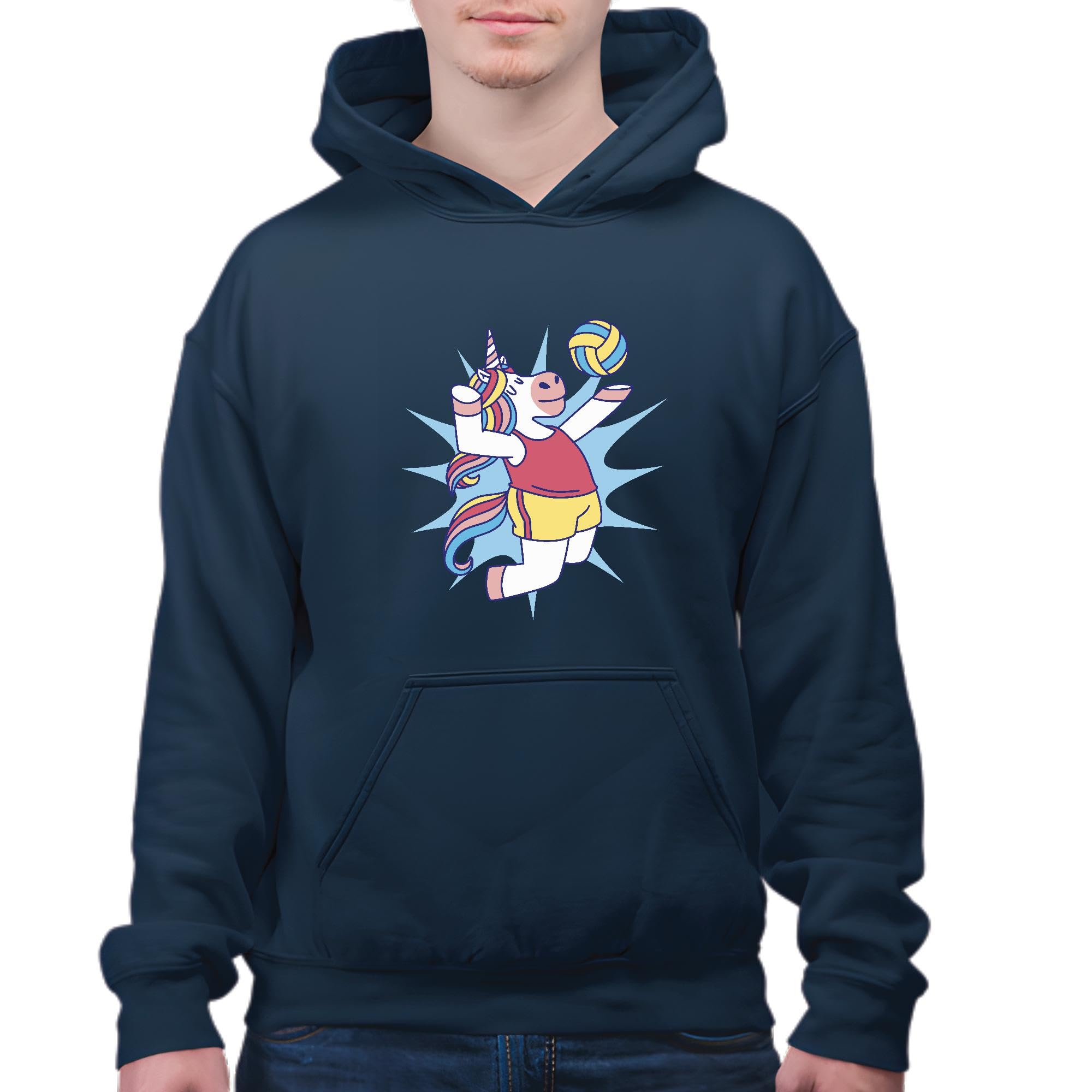 Unique Fun Gifts Unicorn Play Volleyball Perfect for Friends Family Navy and Muticolor Unisex Hoodie