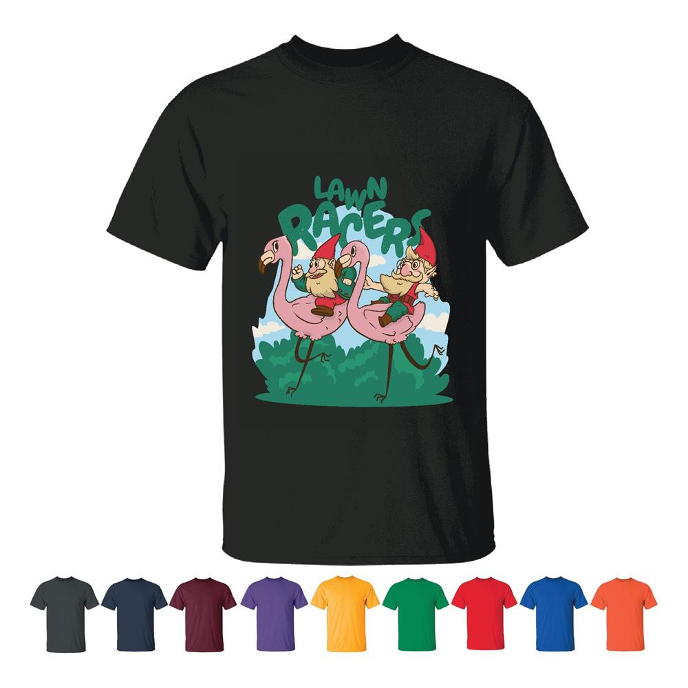 Unique Garden Gift Two Gnomes Riding Flamingos for Gardeners and Nature Lovers Men Women Black T shirt