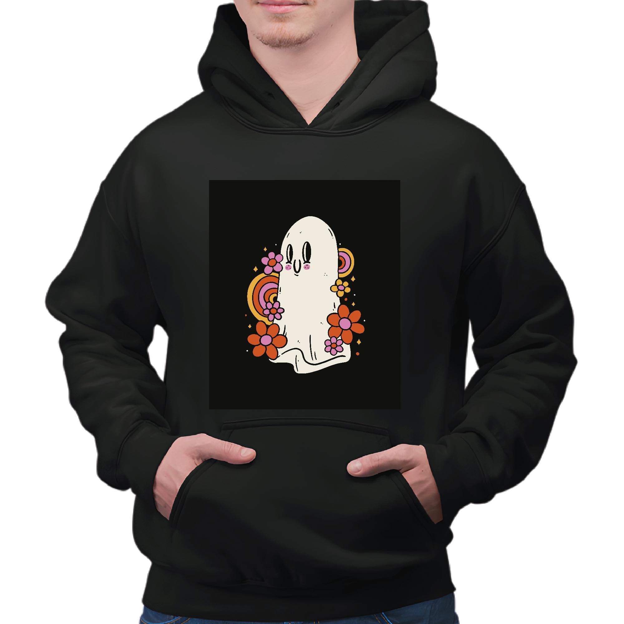 Unique Ghost Themed Gift Ideas for Rainbow Lovers Perfect for All Ages Black and Muticolor Unisex Hoodie