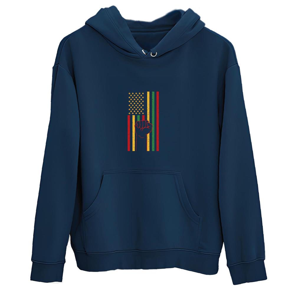 Unique Gift for African Pride Activists Cool Fist in the Air Design Navy and Muticolor Unisex Hoodie
