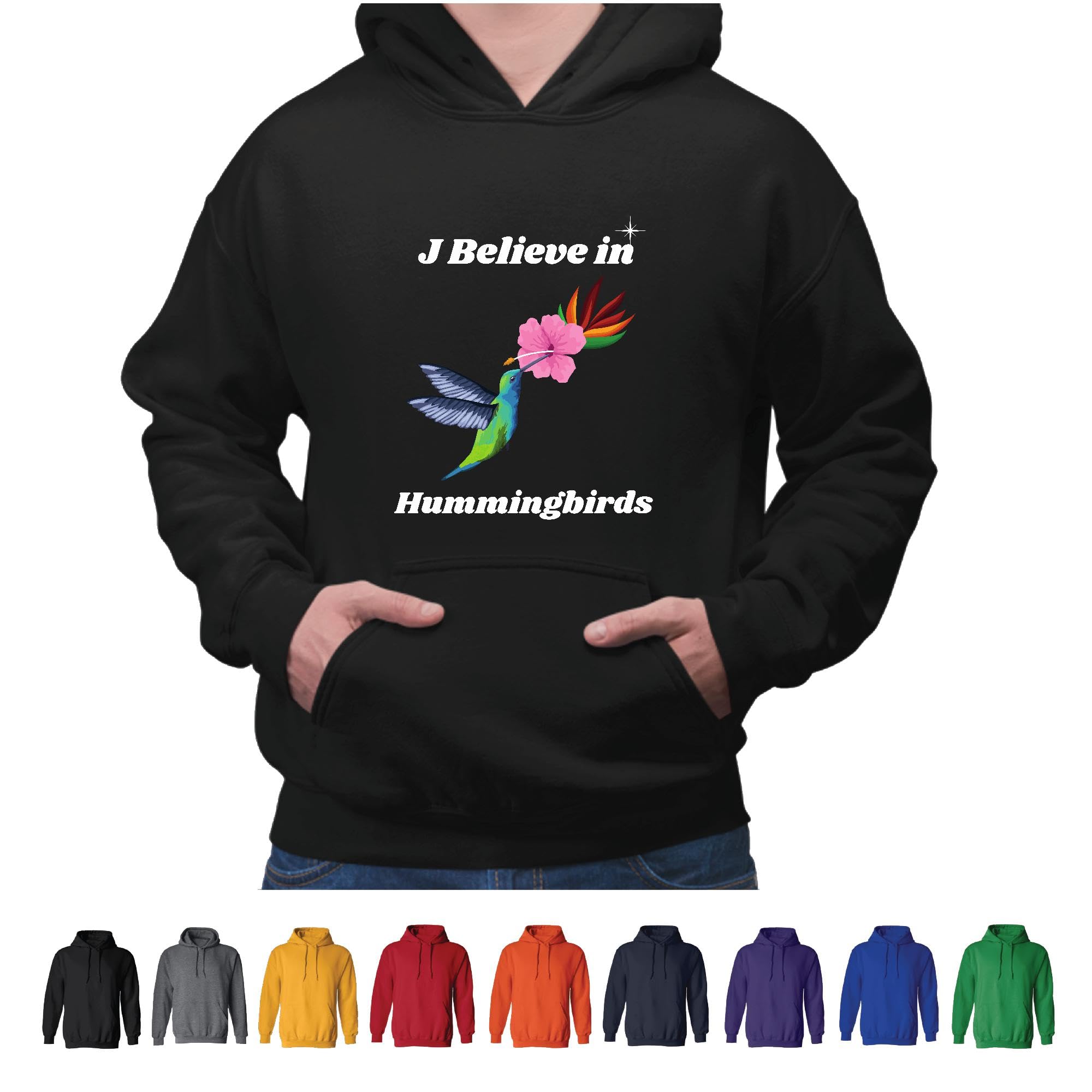 Unique Gift for Bird Lovers I Believe in Hummingbirds Black and Muticolor Unisex Hoodie