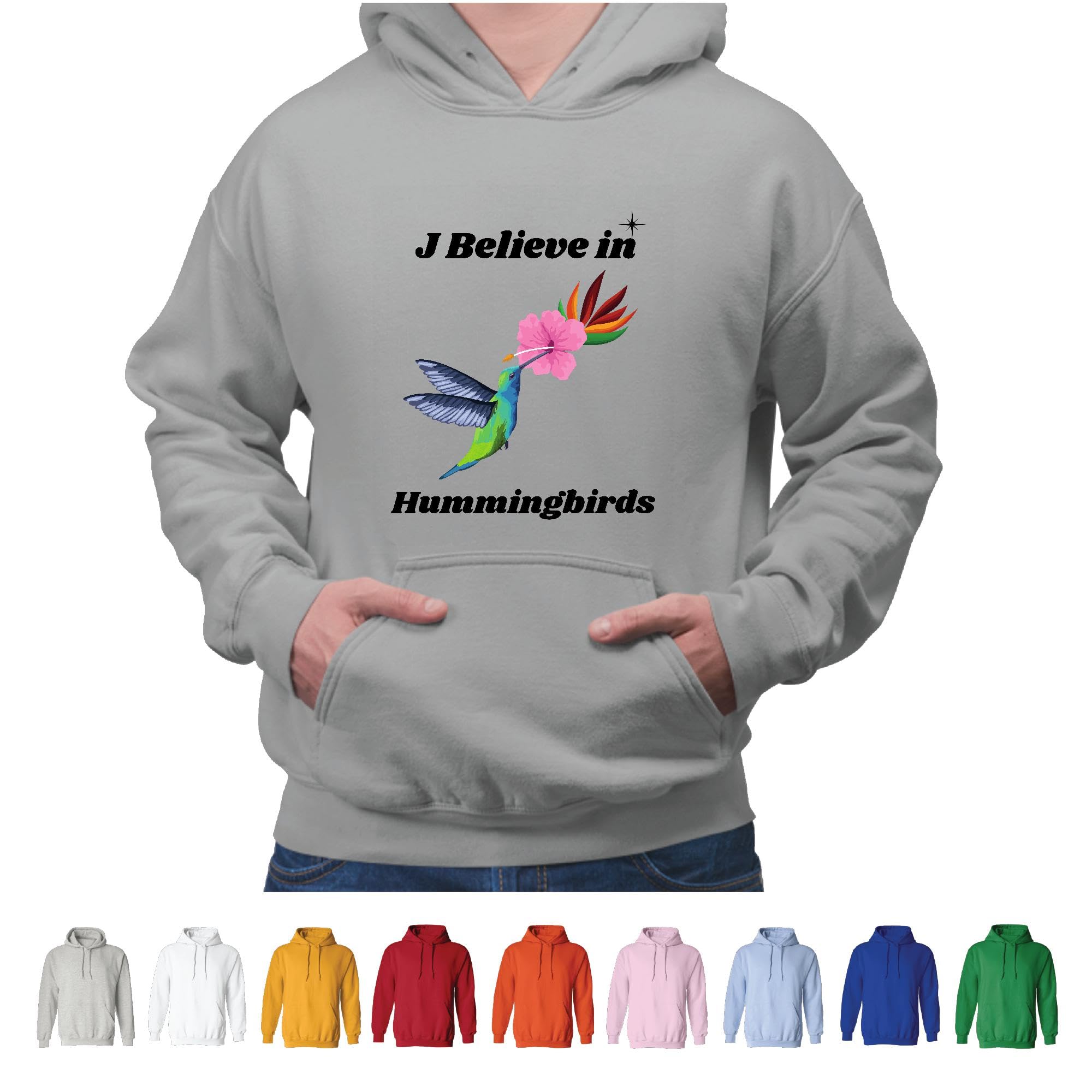 Unique Gift for Bird Lovers I Believe in Hummingbirds Gray and Muticolor Unisex Hoodie