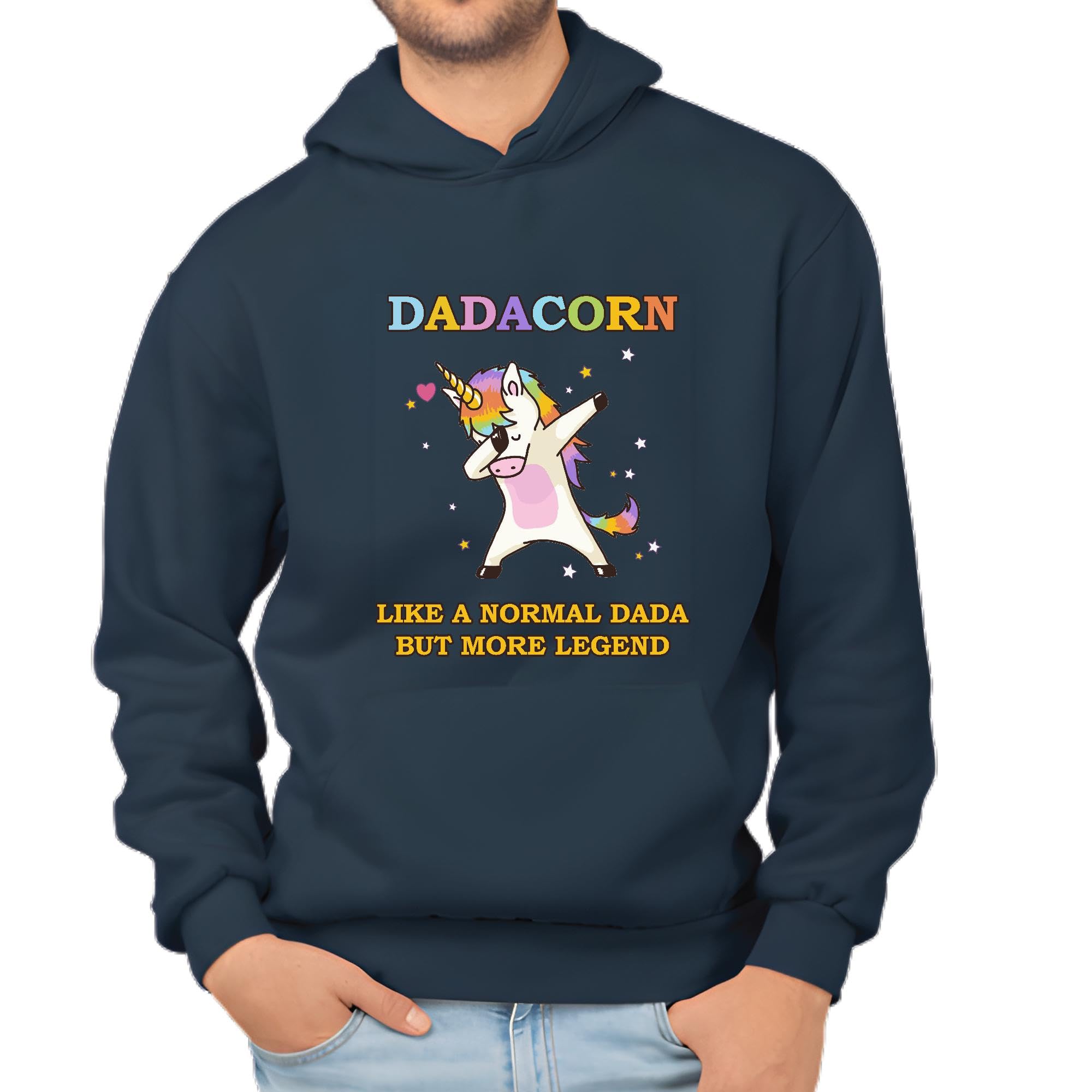 Unique Gift for Dad Cappuccino with Unicorn Design Navy and Muticolor Unisex Hoodie