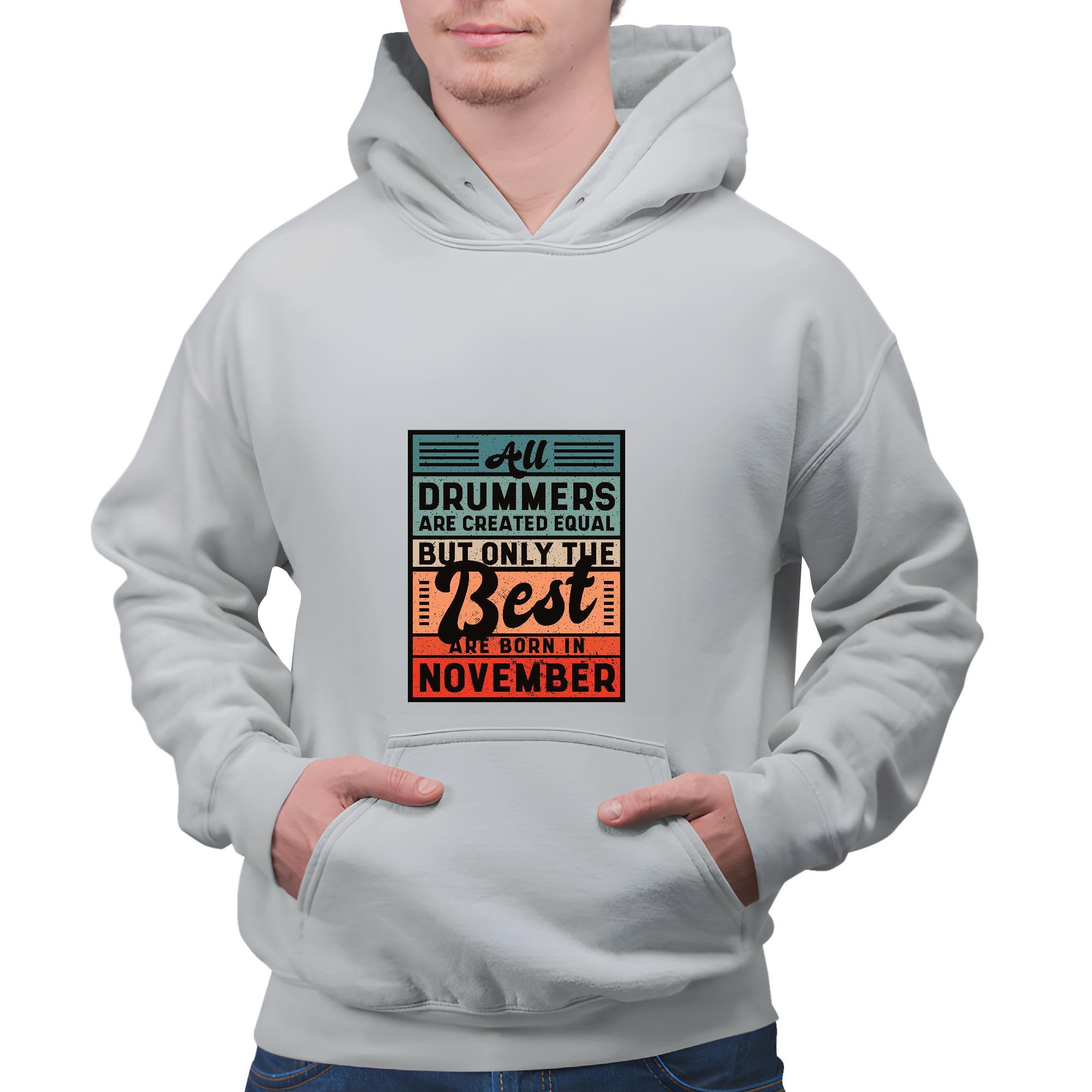 Unique Gift for Drummers Born in November Inspirational Quote for Musicians Gray and Muticolor Unisex Hoodie