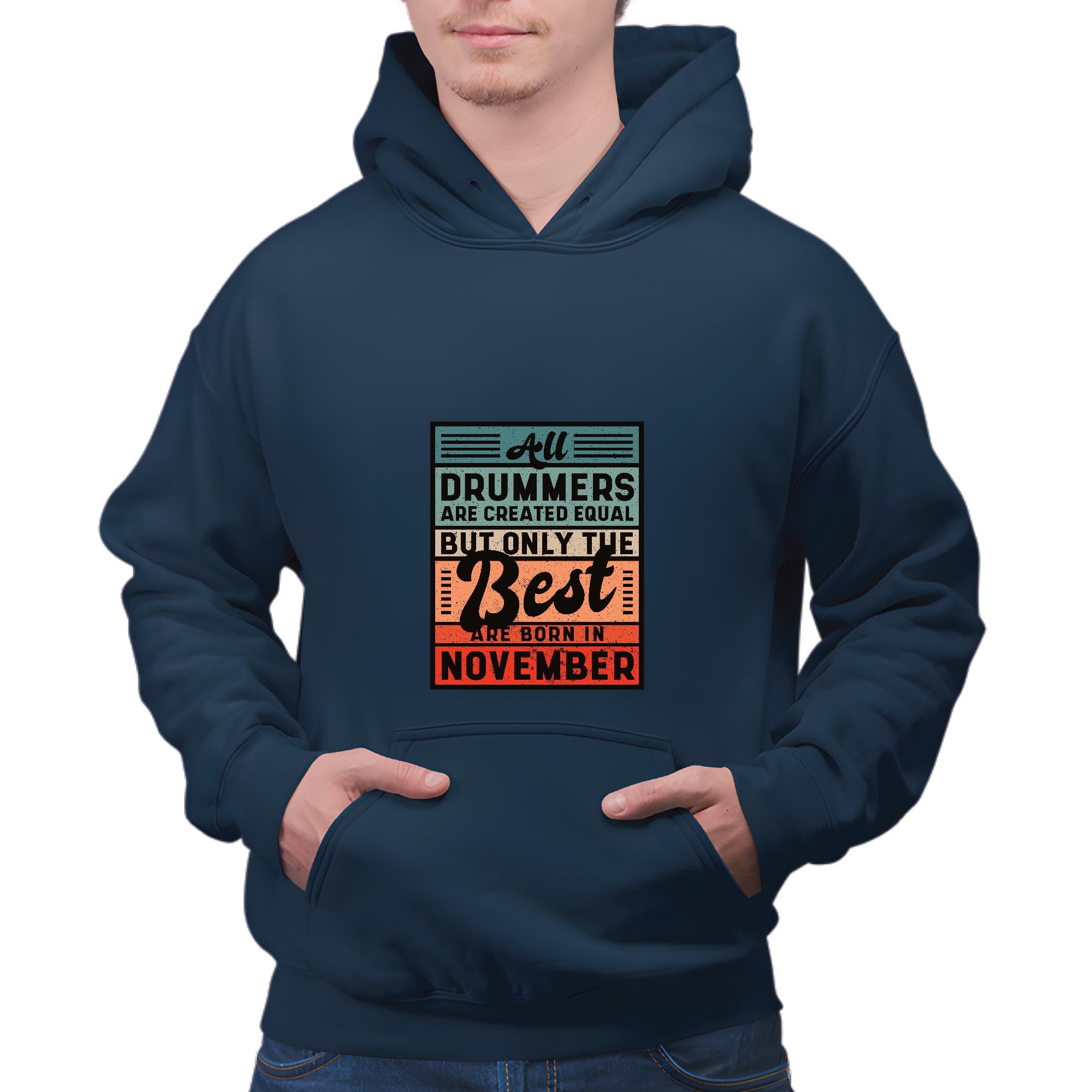 Unique Gift for Drummers Born in November Inspirational Quote for Musicians Navy and Muticolor Unisex Hoodie