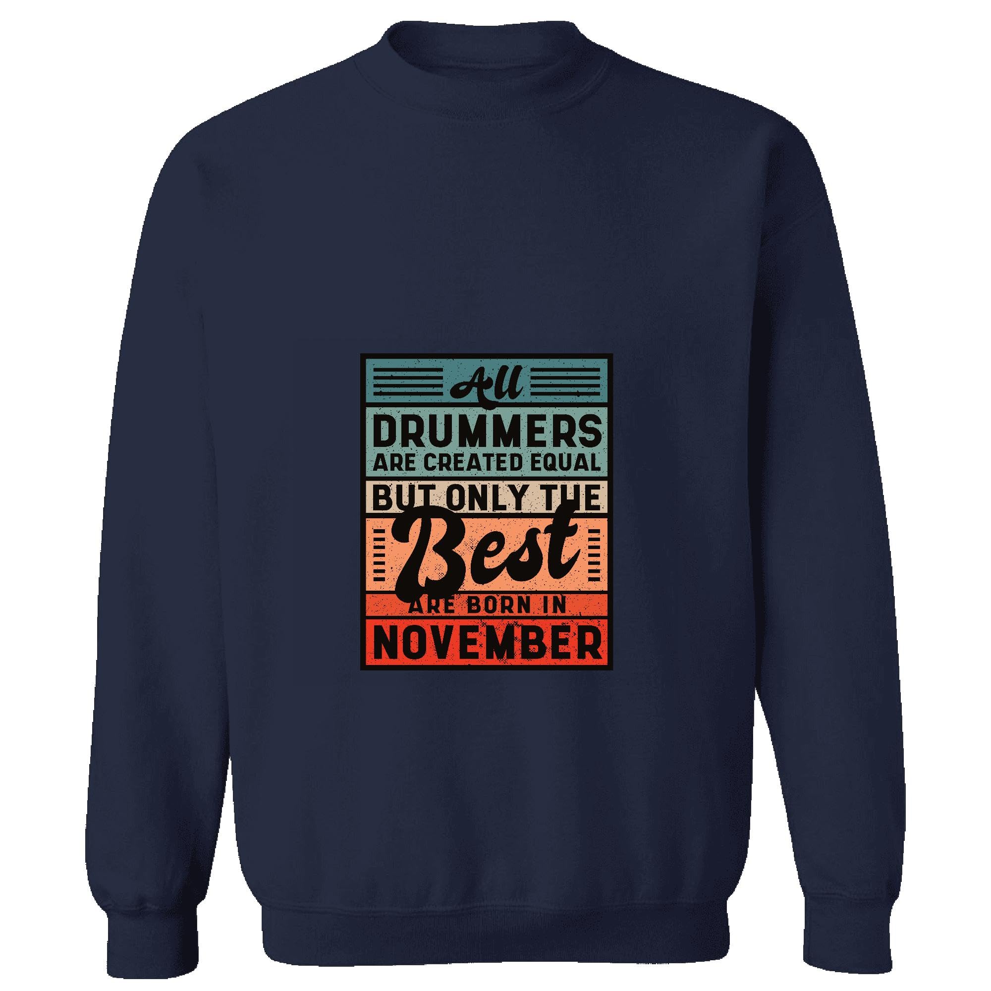 Unique Gift for Drummers Born in November Inspirational Quote for Musicians Navy Muticolor Unisex Sweatshirt