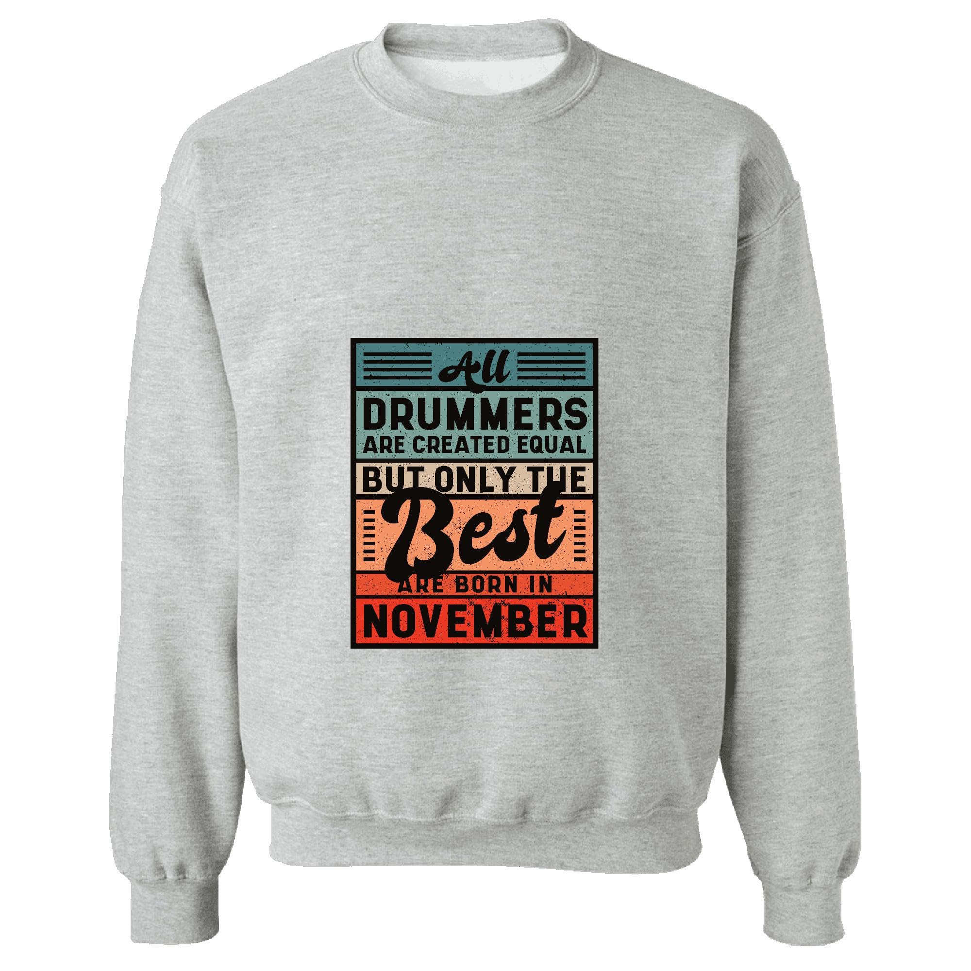 Unique Gift for Drummers Born in November Inspirational Quote for Musicians Grey Muticolor Unisex Sweatshirt