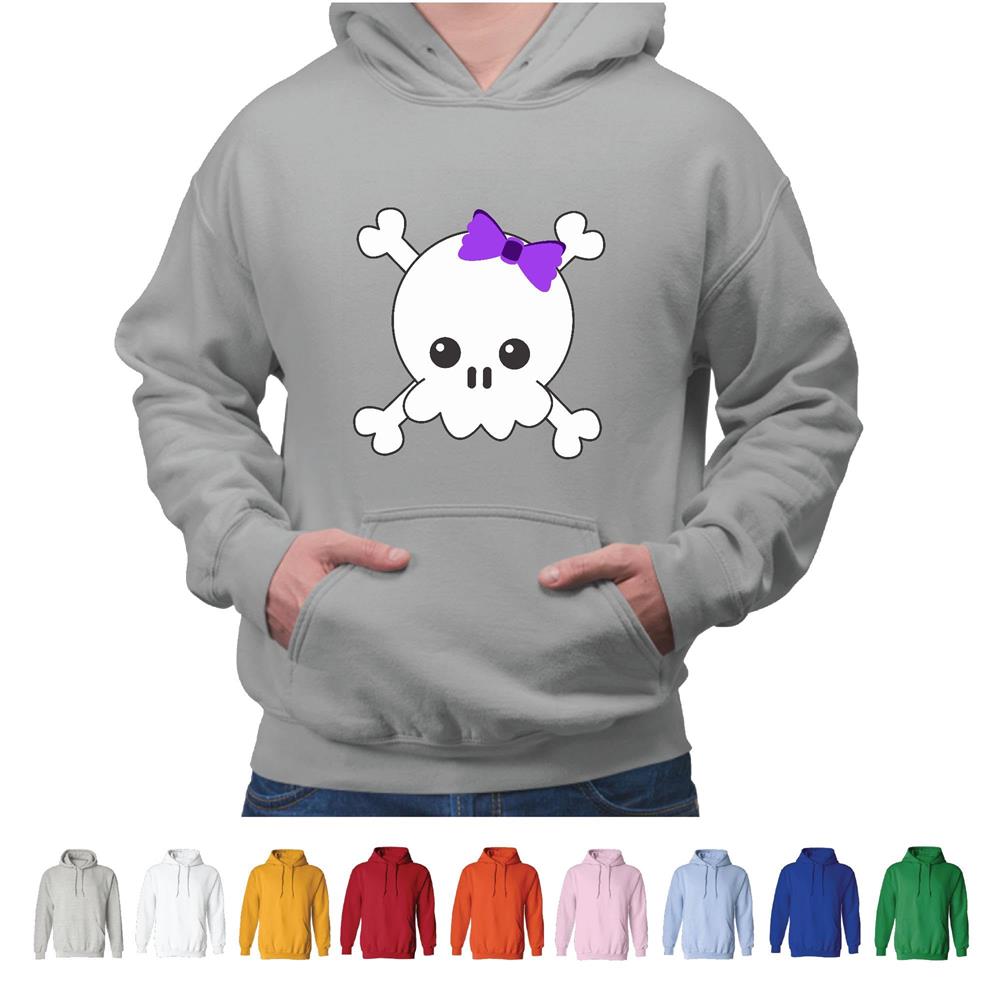 Unique Gift for Goth Punk Girls – Skull with Bow and Crossbones Gray and Muticolor Unisex Hoodie
