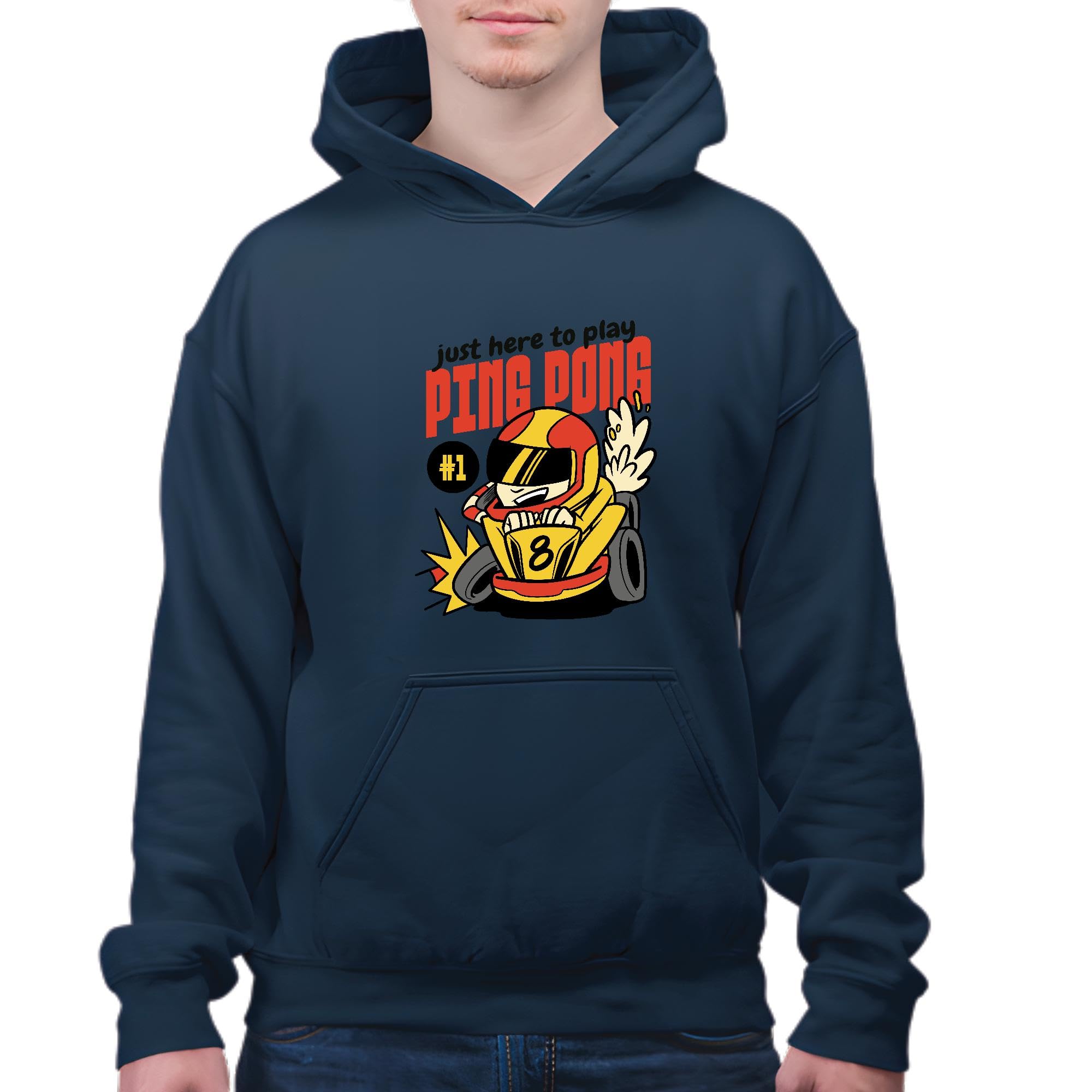 Unique Gift for Go Kart Fans Just Here to Play Ping Pong Design Navy and Muticolor Unisex Hoodie