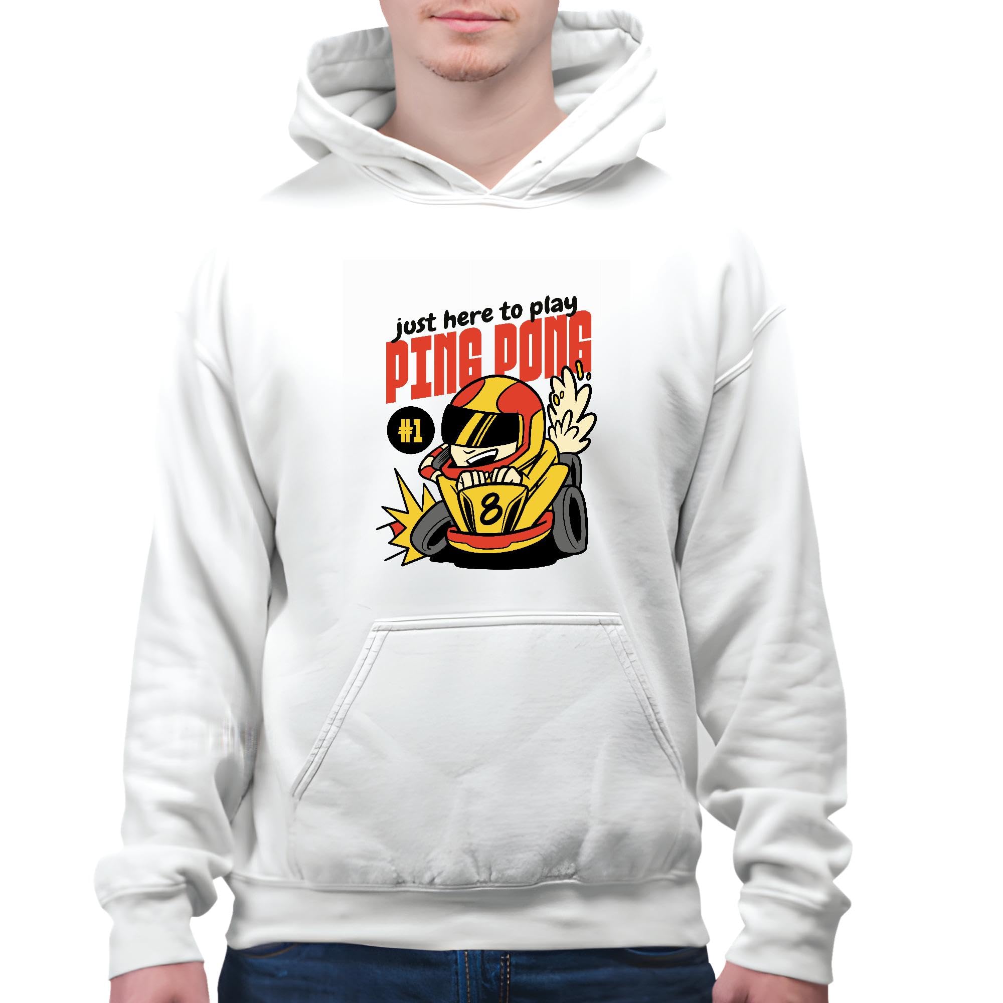 Unique Gift for Go Kart Fans Just Here to Play Ping Pong Design White and Muticolor Unisex Hoodie
