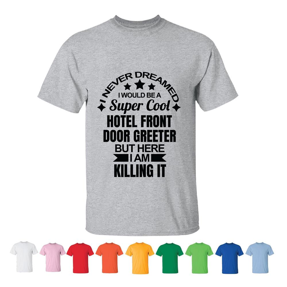 Unique Gift for Hotel Front Door Greeter Inspirational Motivational Message Men Women White Gray T shirt