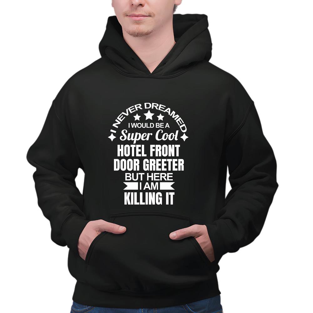 Unique Gift for Hotel Front Door Greeter Inspirational Motivational Message Men Women Black T shirt