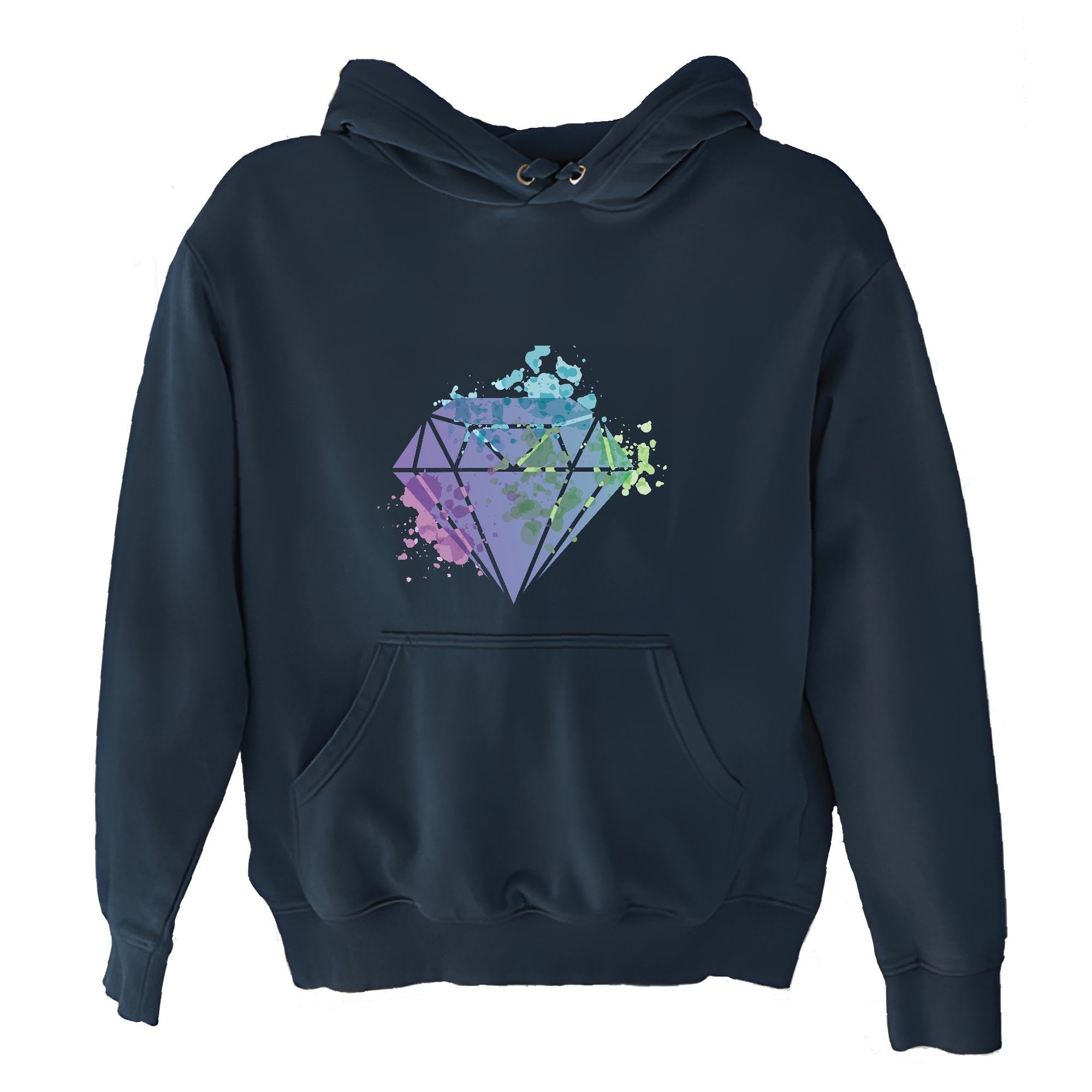 Unique Gift for Kids Diamond Watercolour Paint Splashes Design Fun Creative Art Navy and Muticolor Unisex Hoodie