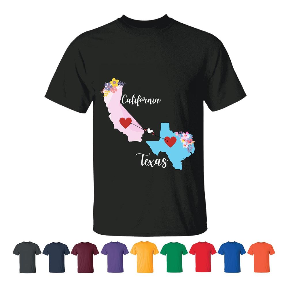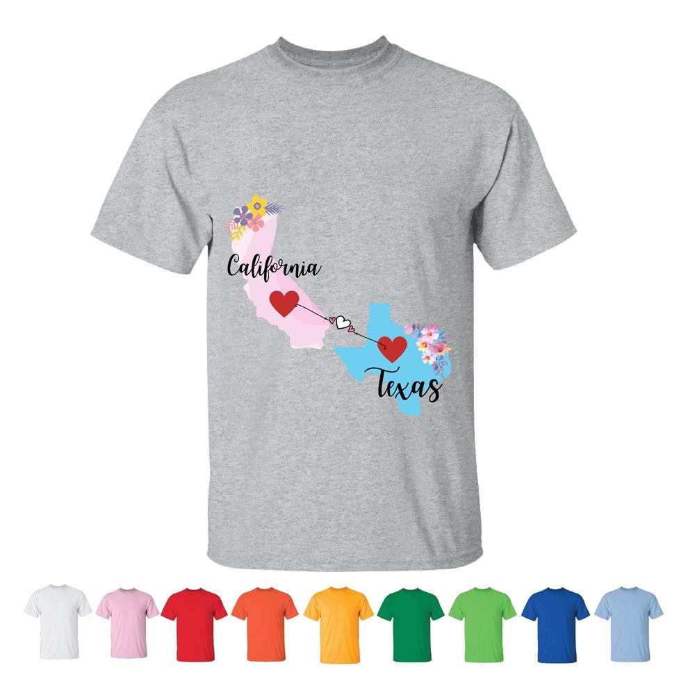Unique Gift for Long Distance California Texas Friends Family Coworkers Men Women White Gray T shirt