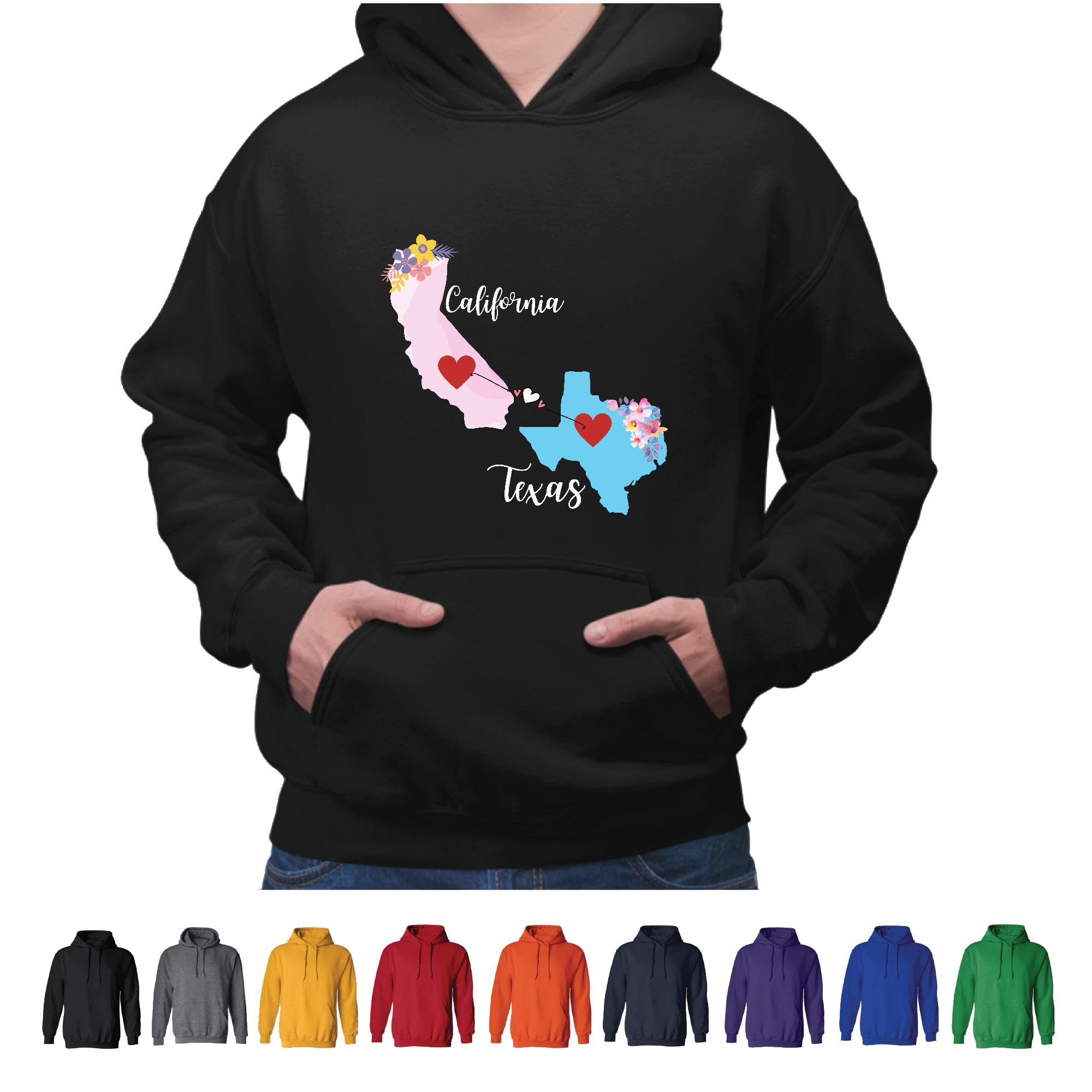 Unique Gift for Long Distance California Texas Friends Family Coworkers Black and Muticolor Unisex Hoodie