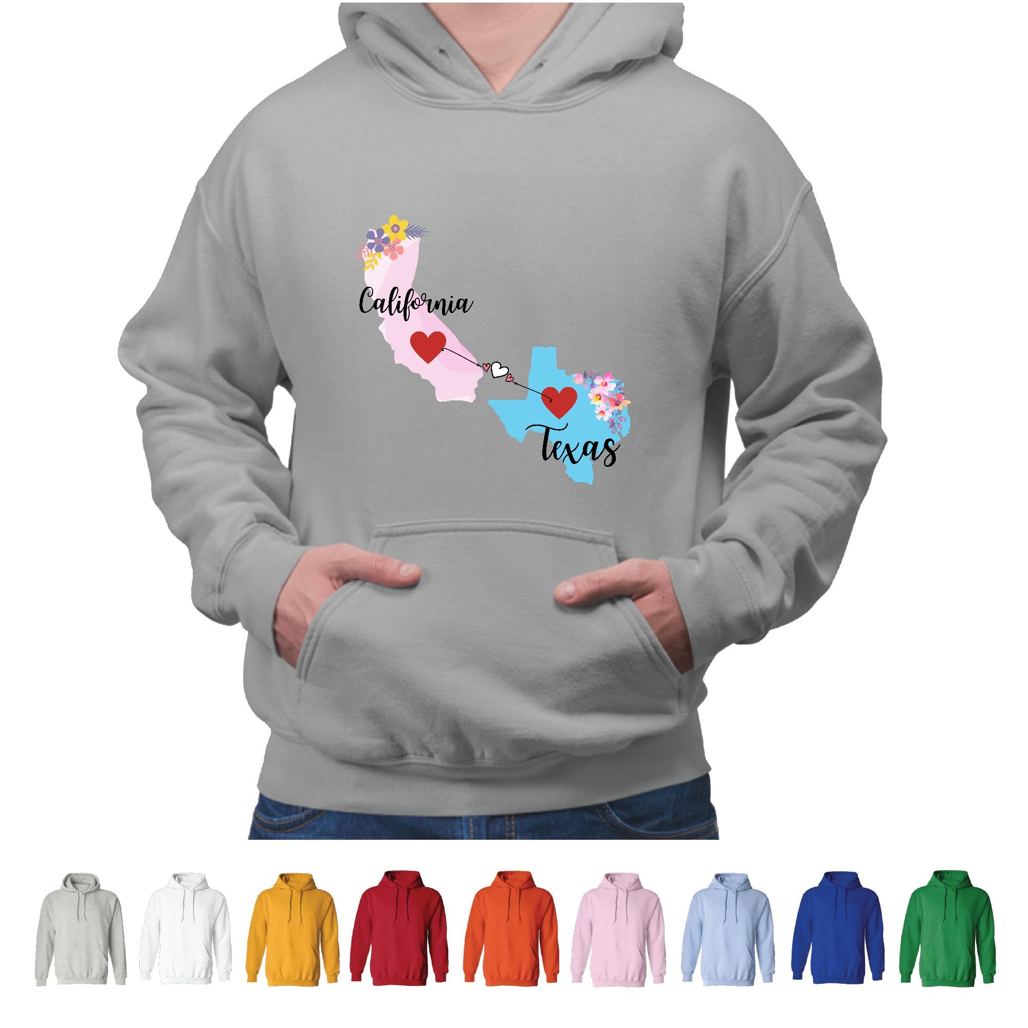 Unique Gift for Long Distance California Texas Friends Family Coworkers Gray and Muticolor Unisex Hoodie
