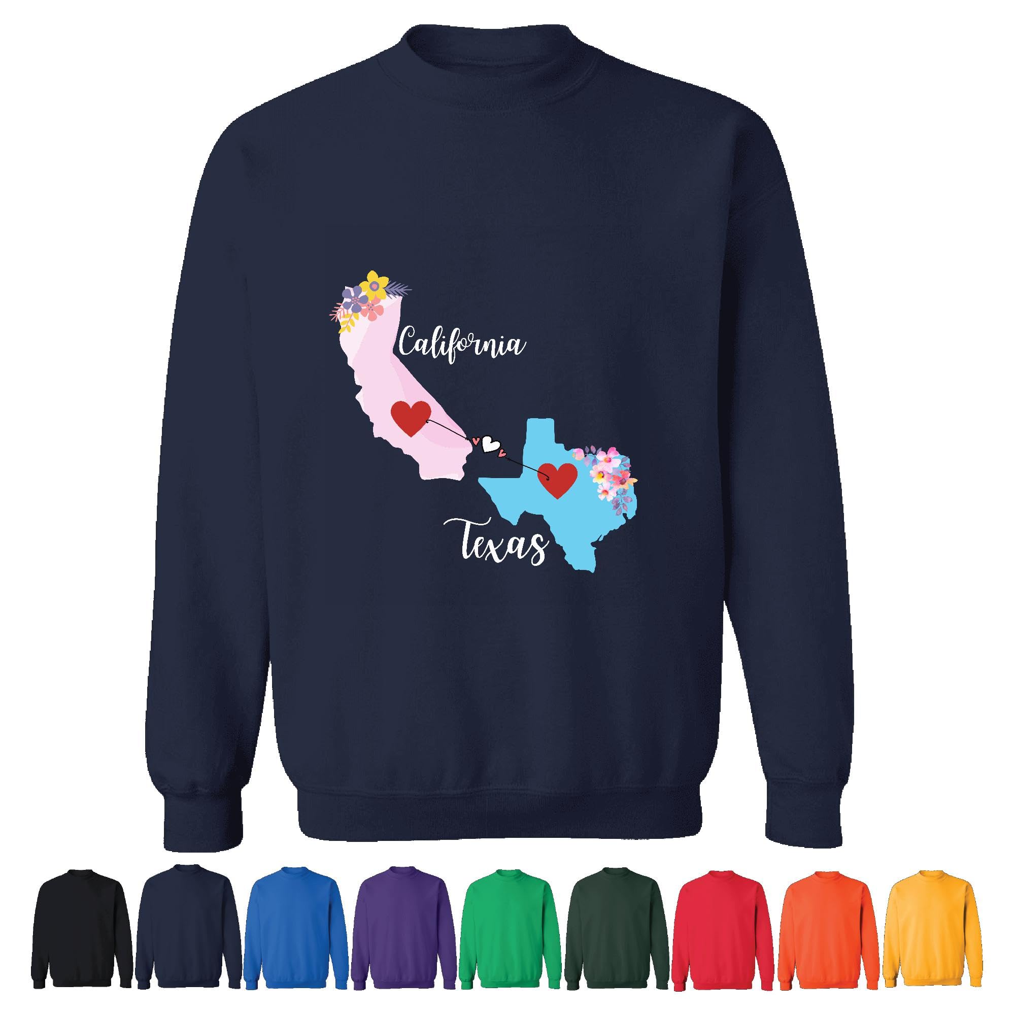 Unique Gift for Long Distance California Texas Friends Family Coworkers Navy Muticolor Unisex Sweatshirt