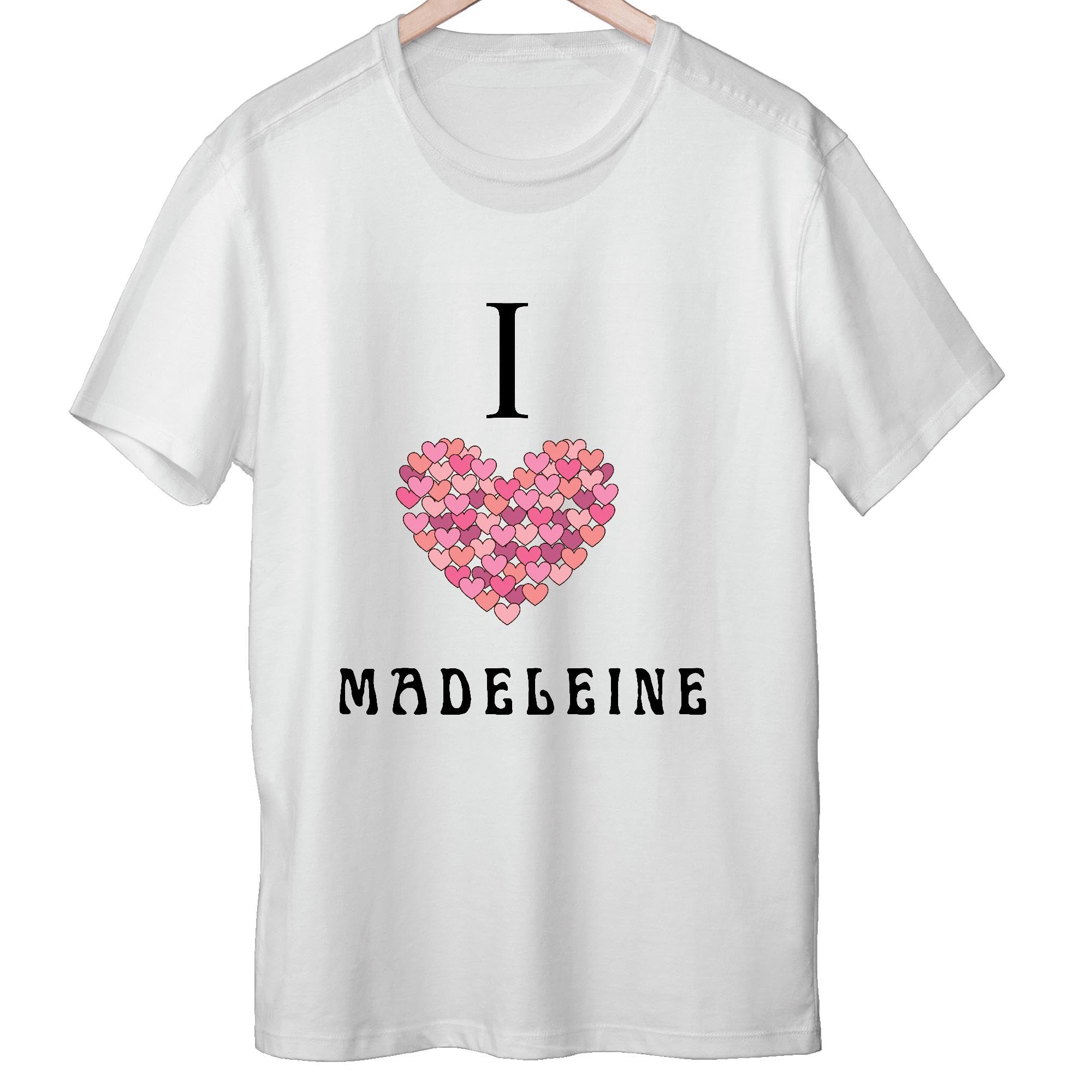 Unique Gift for Madeleine Lovers with Colorful Hearts Men Women White Gray Multicolor T shirt