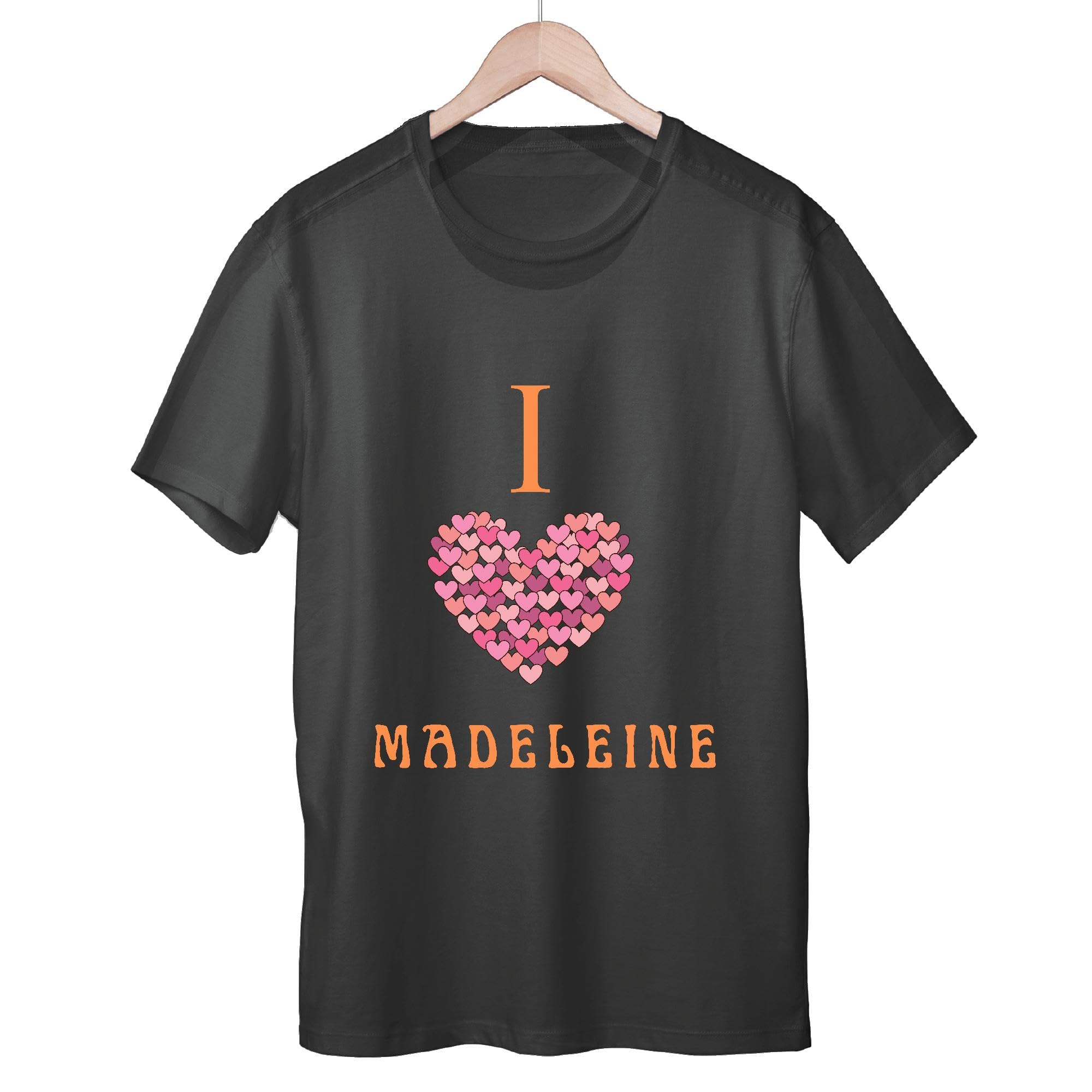Unique Gift for Madeleine Lovers with Colorful Hearts Men Women Black Multicolor T shirt