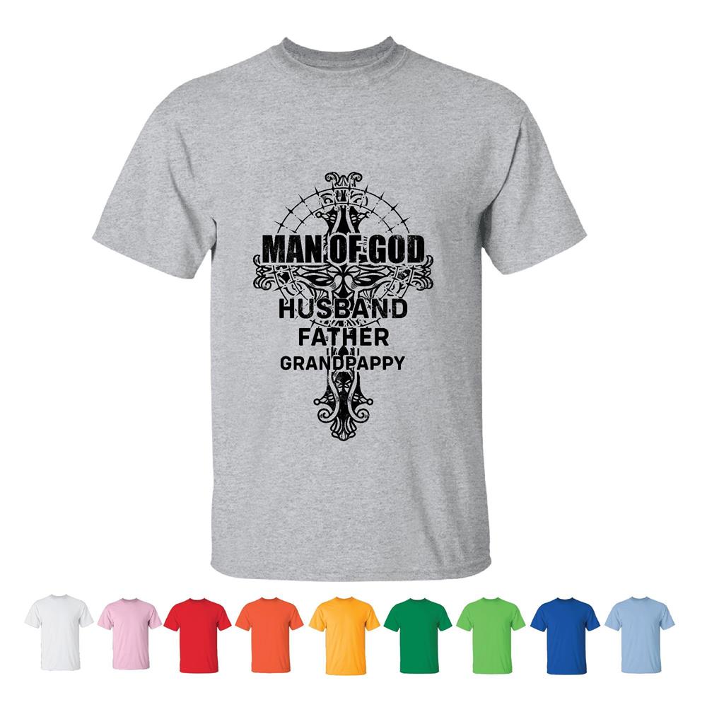 Unique Gift for Man of God Husband Father Grandpappy Family Christians Believers Prayers Men Women White Gray T shirt
