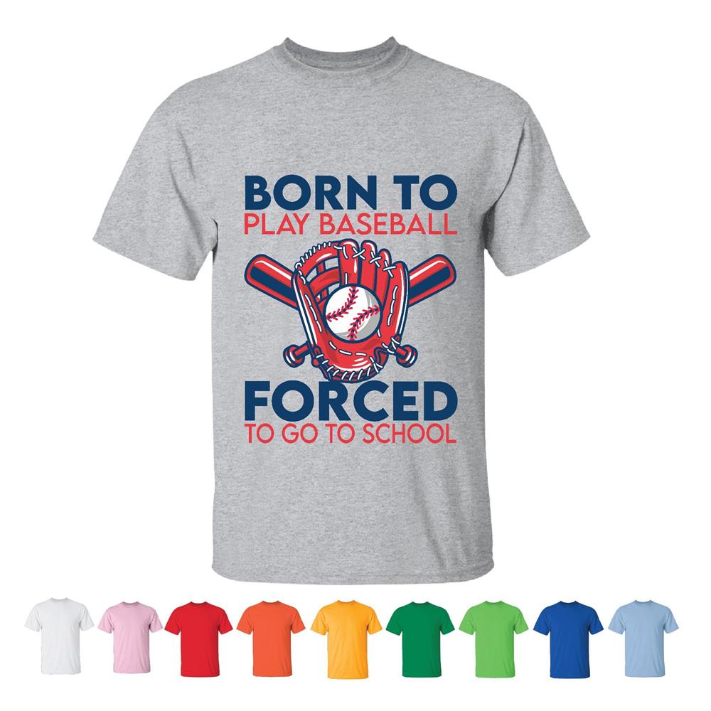 Born To Play Baseball Forced To Go To School funny for Baseball Lover Men Women White Gray T shirt