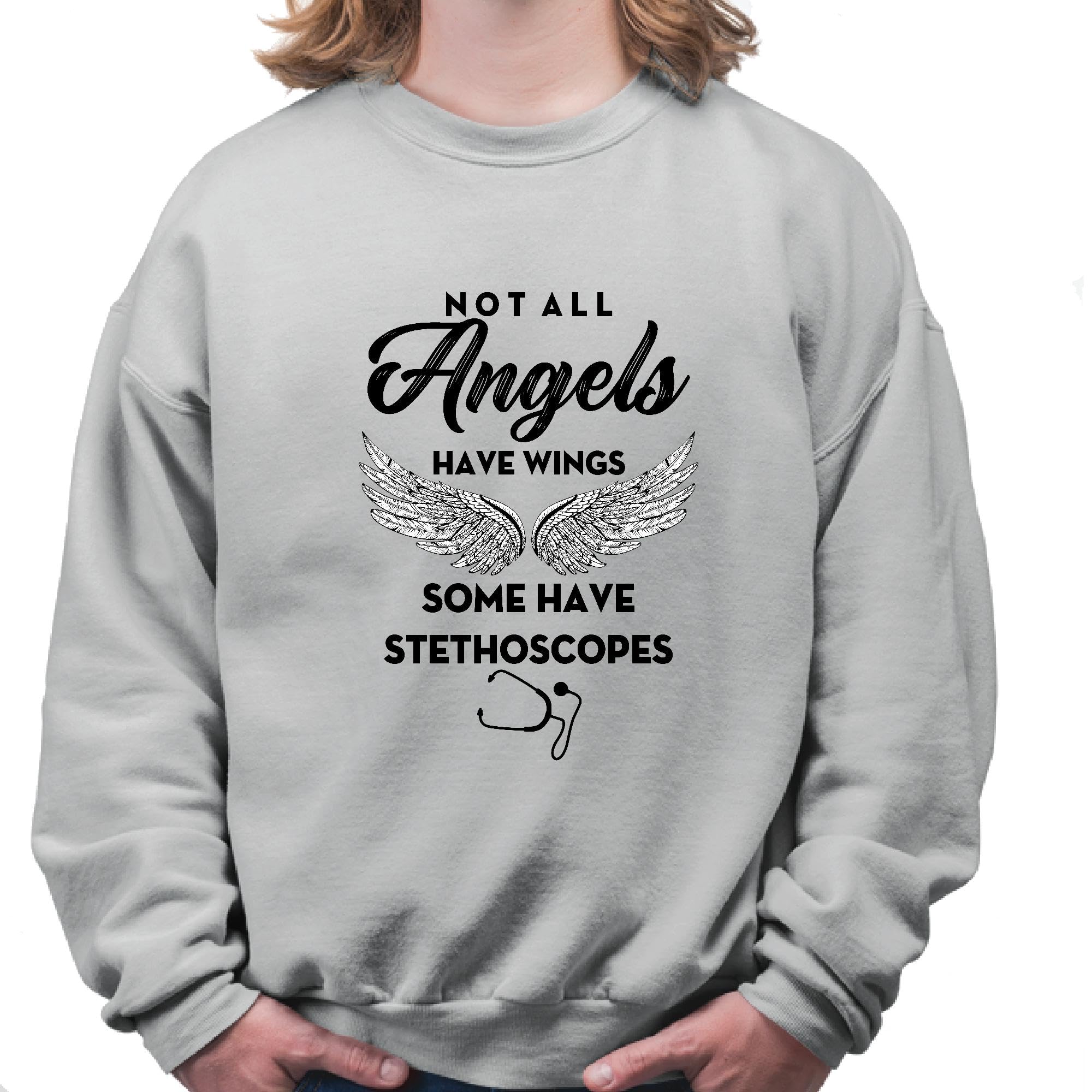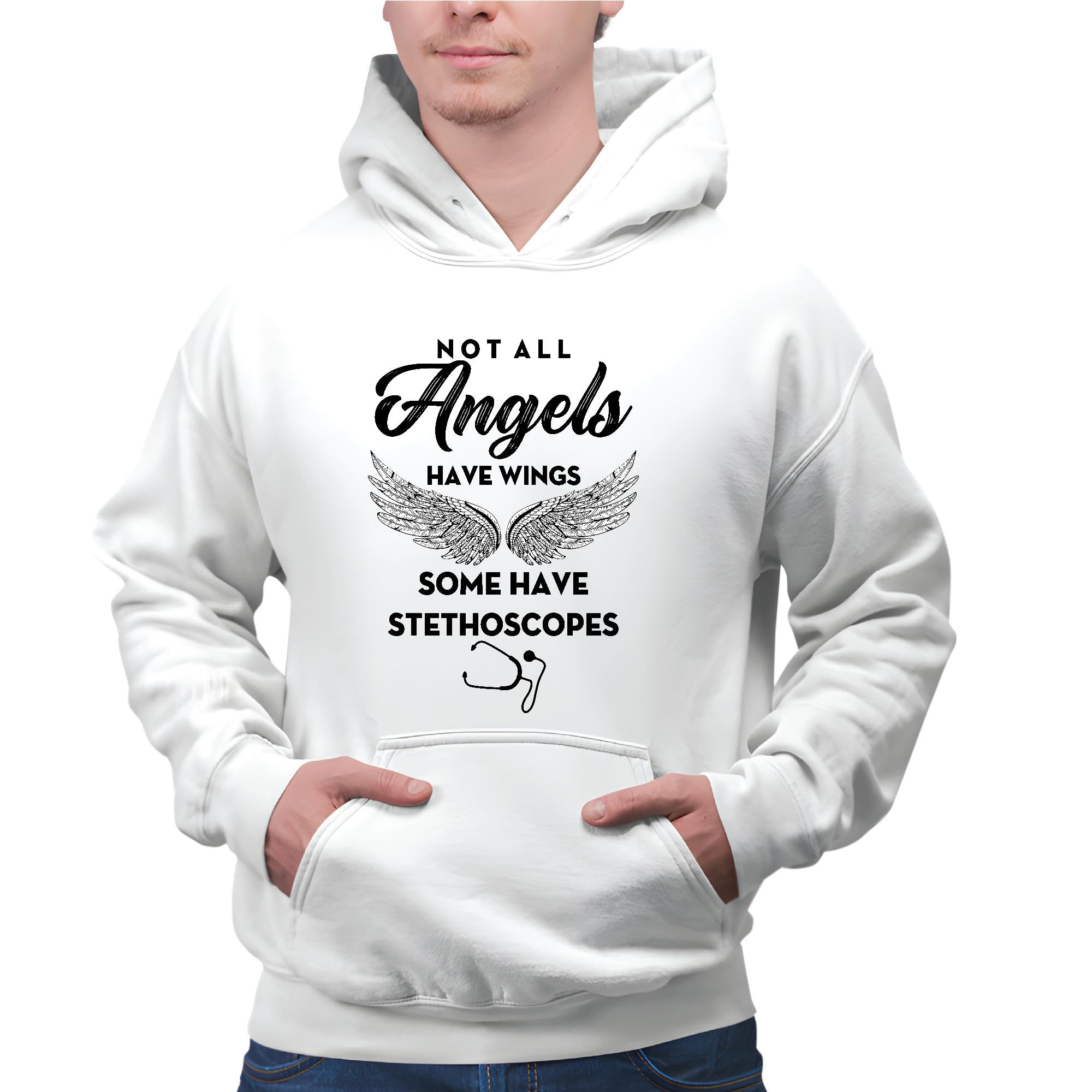 Unique Gift for Nurse Doctor Humor Stethoscope Not All Angels Have Wings Gray and Muticolor Unisex Hoodie