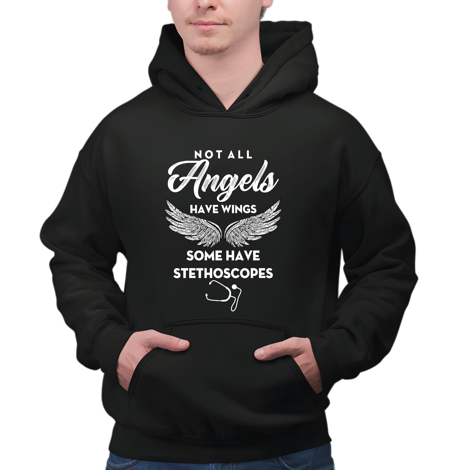 Unique Gift for Nurse Doctor Humor Stethoscope Not All Angels Have Wings Black and Muticolor Unisex Hoodie