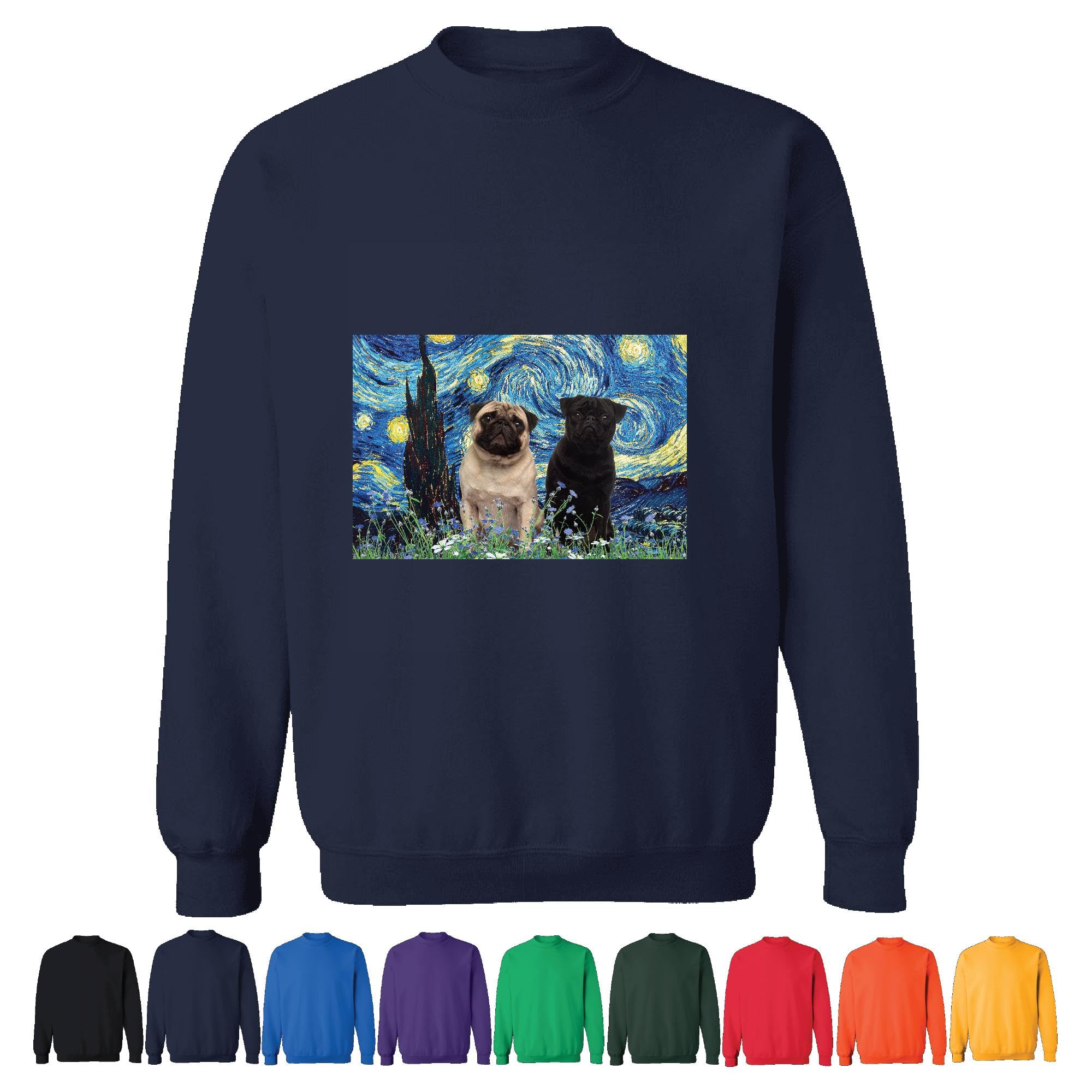 Unique Gift for Pug Lovers Starry Night and Pug Pair White Black Navy Muticolor Unisex Sweatshirt