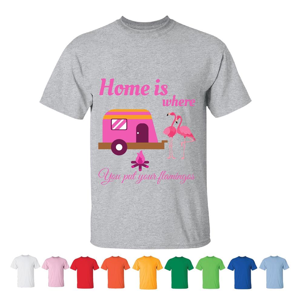Unique Gift for RV and Camper Lovers Featuring Flamingos Men Women White Gray T shirt