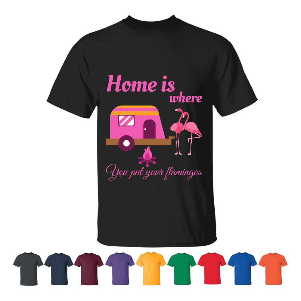 Unique Gift for RV and Camper Lovers Featuring Flamingos Men Women Black T shirt