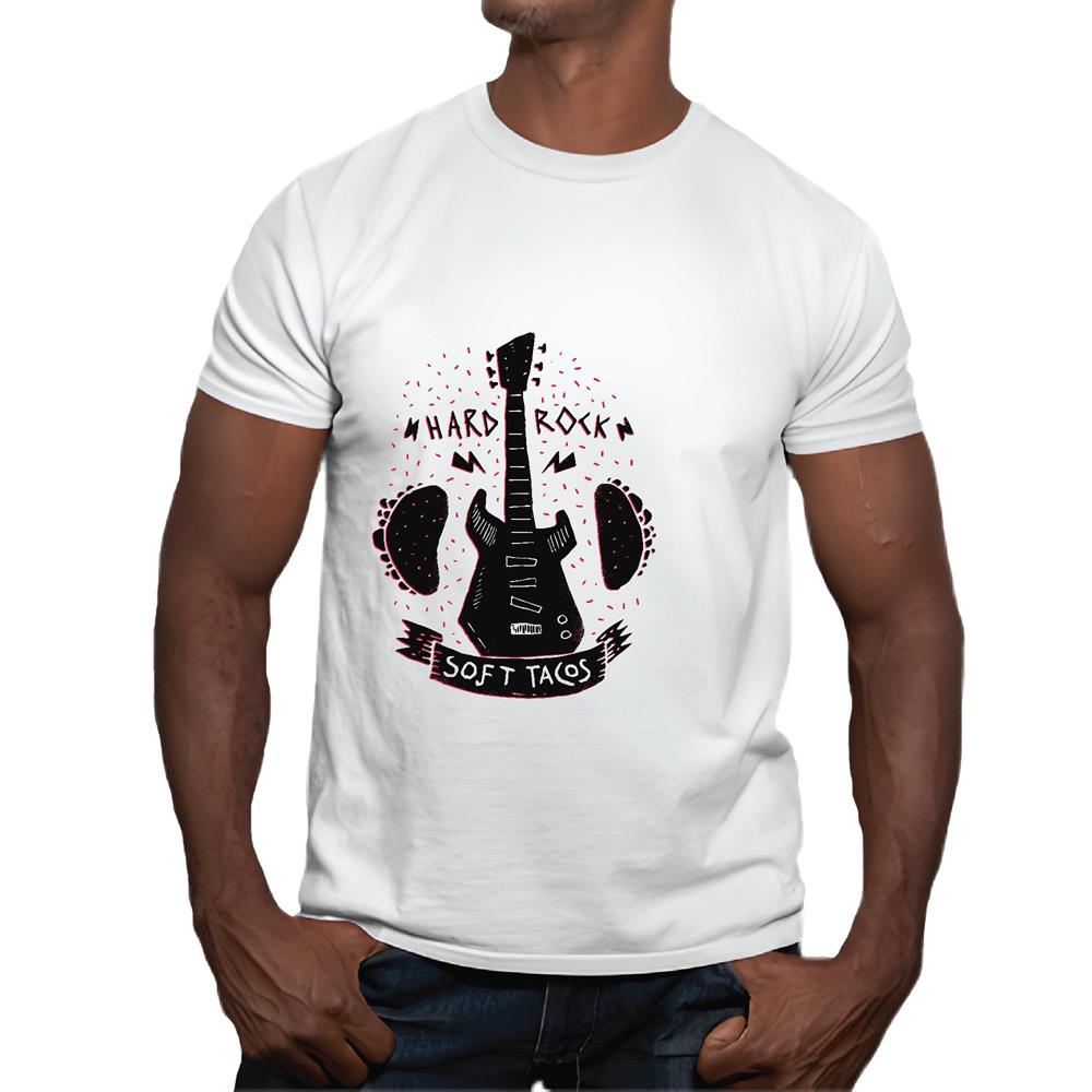 Unique Gift for RockMusic Lovers Guitar and Tacos Design HardRock SoftTacos Men Women White Gray Multicolor T shirt