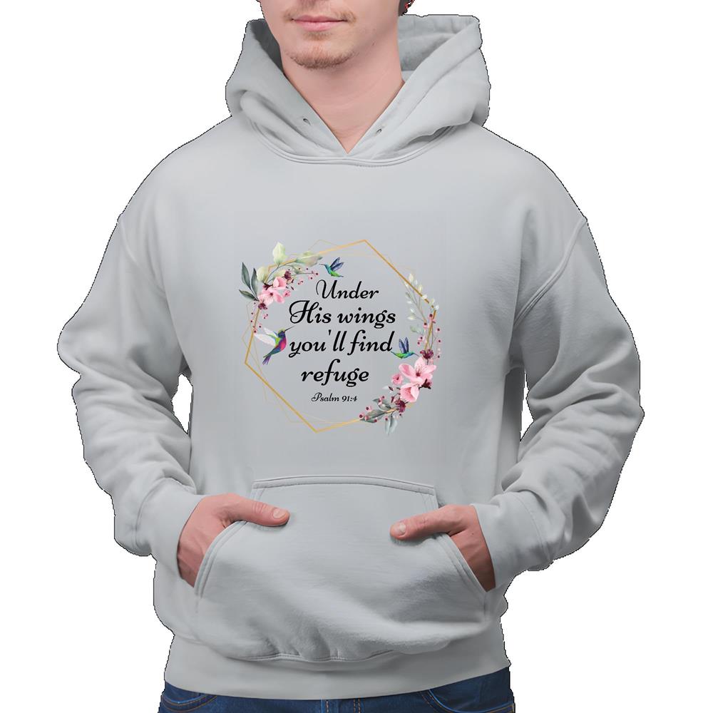 Unique Gift for Someone Seeking Refuge Hummingbird Design Gray and Muticolor Unisex Hoodie