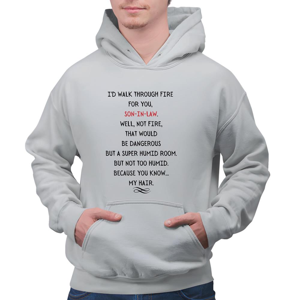 Unique Gift for Son in Law I d Walk Through Fire for You Quote Gray and Muticolor Unisex Hoodie